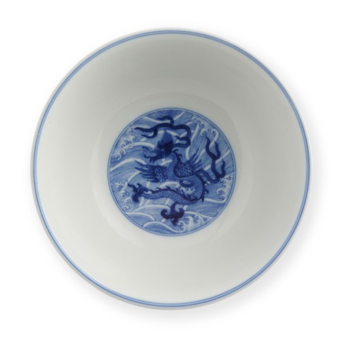 The exterior is finely decorated with auspicious animals amid cresting waves, while the interior is centred with a depiction of a flying dragon.