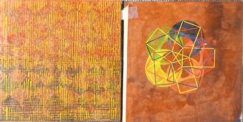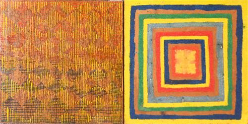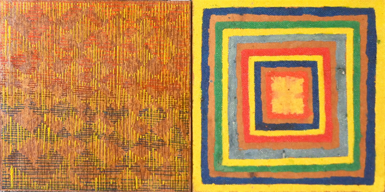 MIXED MEDIA ON BOARD (2), UNSIGNED, 20.5 X 20.5CM (EACH)