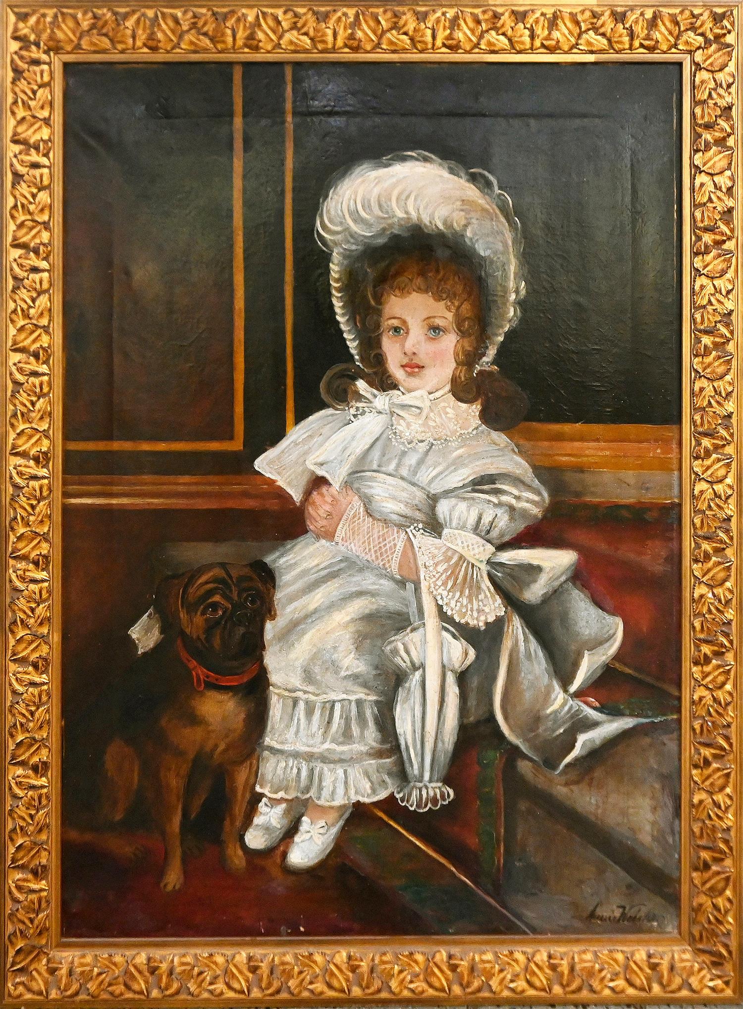 ARTIST UNKNOWN (SIGNATURE INDESCIPERABLE), PORTRAIT OF A GIRL AND HER DOG,
