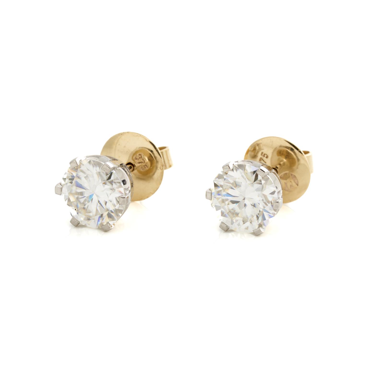 A PAIR OF MOISSANITE EARRINGS IN TWO-TONE 9CT GOLD, THE MOISSANITES TOTALLING 3.68CTS, TO POST AND BUTTERFLY FITTINGS