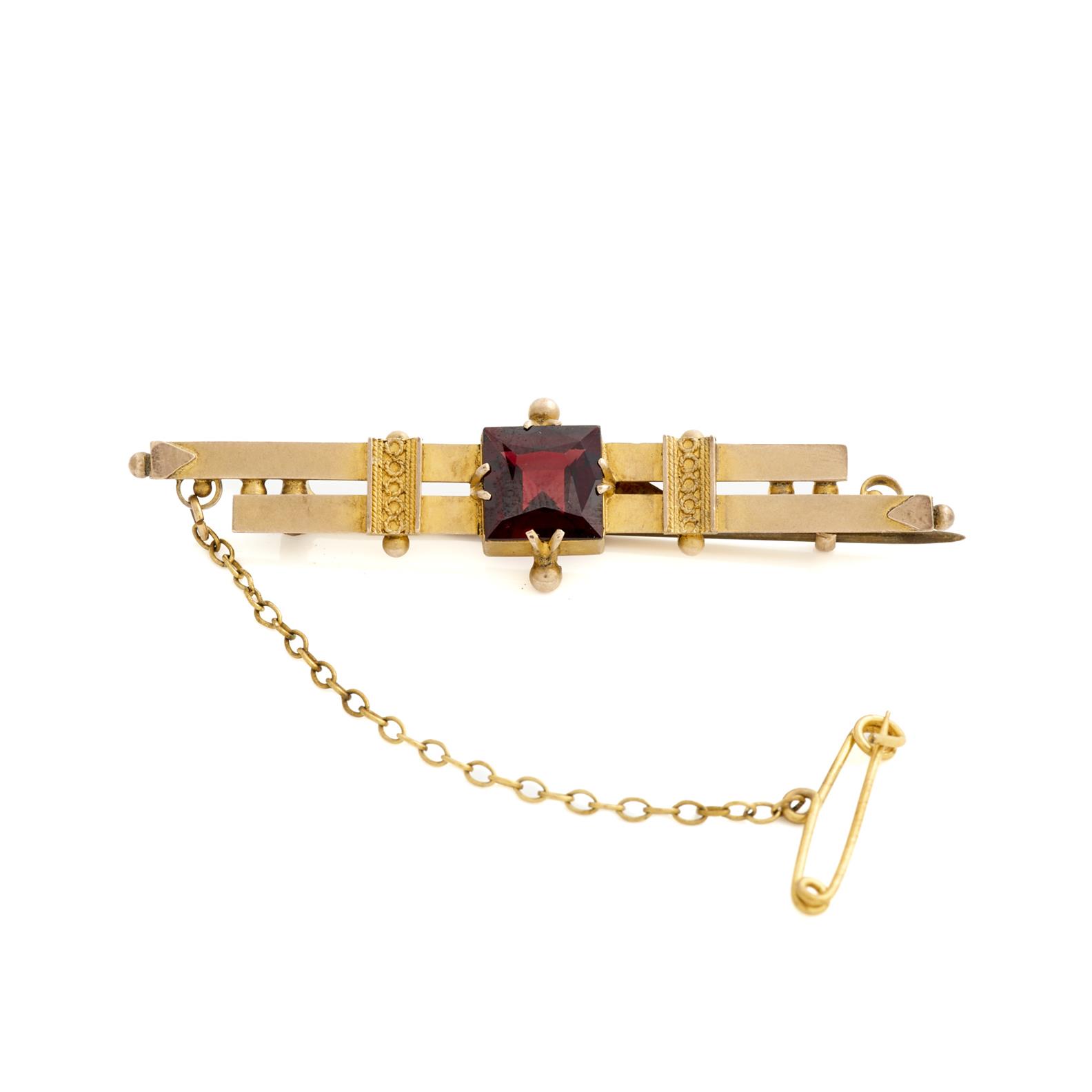 AN EDWARDIAN PASTE BAR BROOCH IN 9CT GOLD, 50MM, 4.3GMS