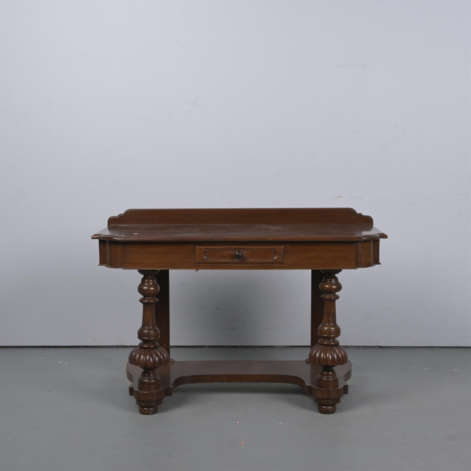 A VICTORIAN MAHOGANY SIDE TABLE, WITH RECESSED UNDER-TIER (82H X 121W X 56D CM) (THIS ITEM MUST BE REMOVED BY CARRIERS AT THE CUSTOMER'S EXPENSE. LEONARD JOEL STAFF CANNOT ASSIST CARRYING THIS ITEM)