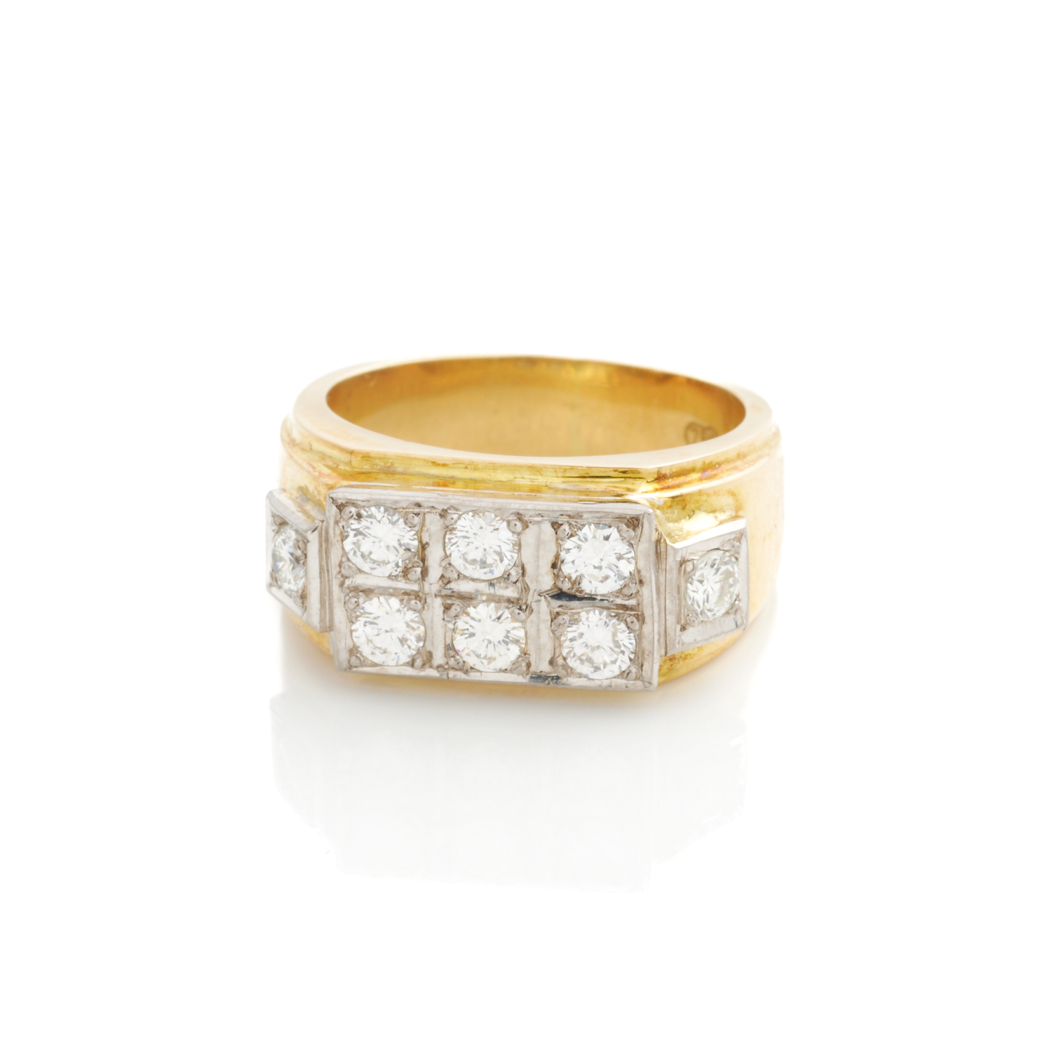 A DIAMOND BAND IN TWO TONE 18CT GOLD, SIZE M, 10.5GMS