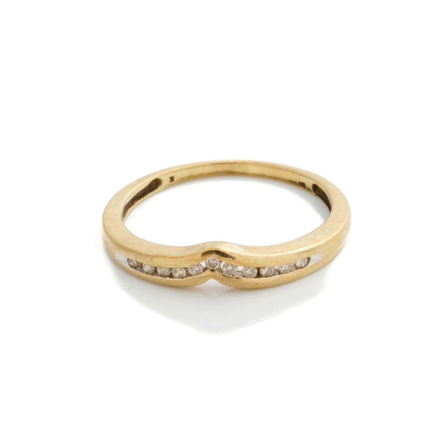 A DIAMOND BAND IN 9CT GOLD, SIZE O 1/2, 1.77GMS