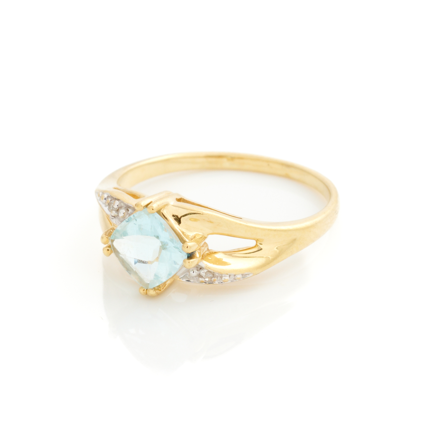 A GEM SET RING IN 9CT GOLD, SIZE O, 2.4GMS