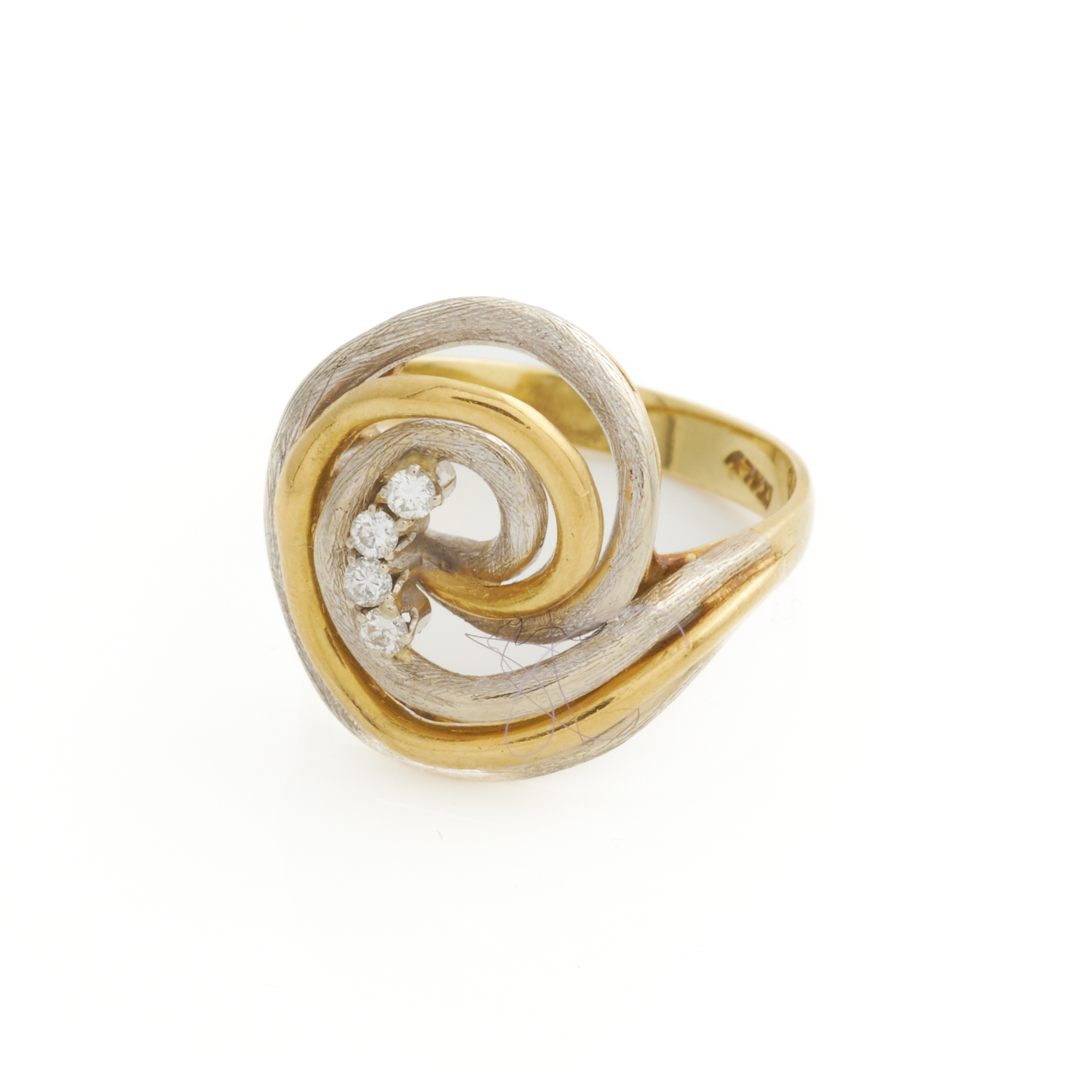 A DIAMOND RING IN 18CT TWO TONE GOLD, SIZE K 1/2, 4.6GMS