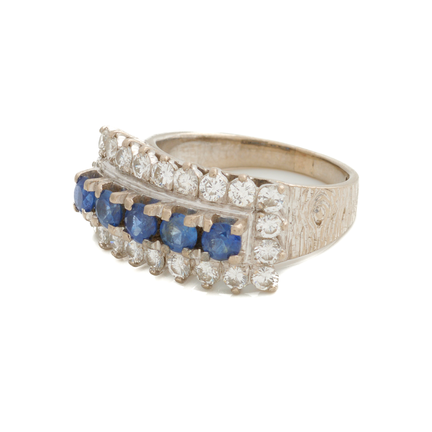 A SAPPHIRE AND DIAMOND RING IN 14CT WHITE GOLD, SIZE N 1/12, 8.2GMS