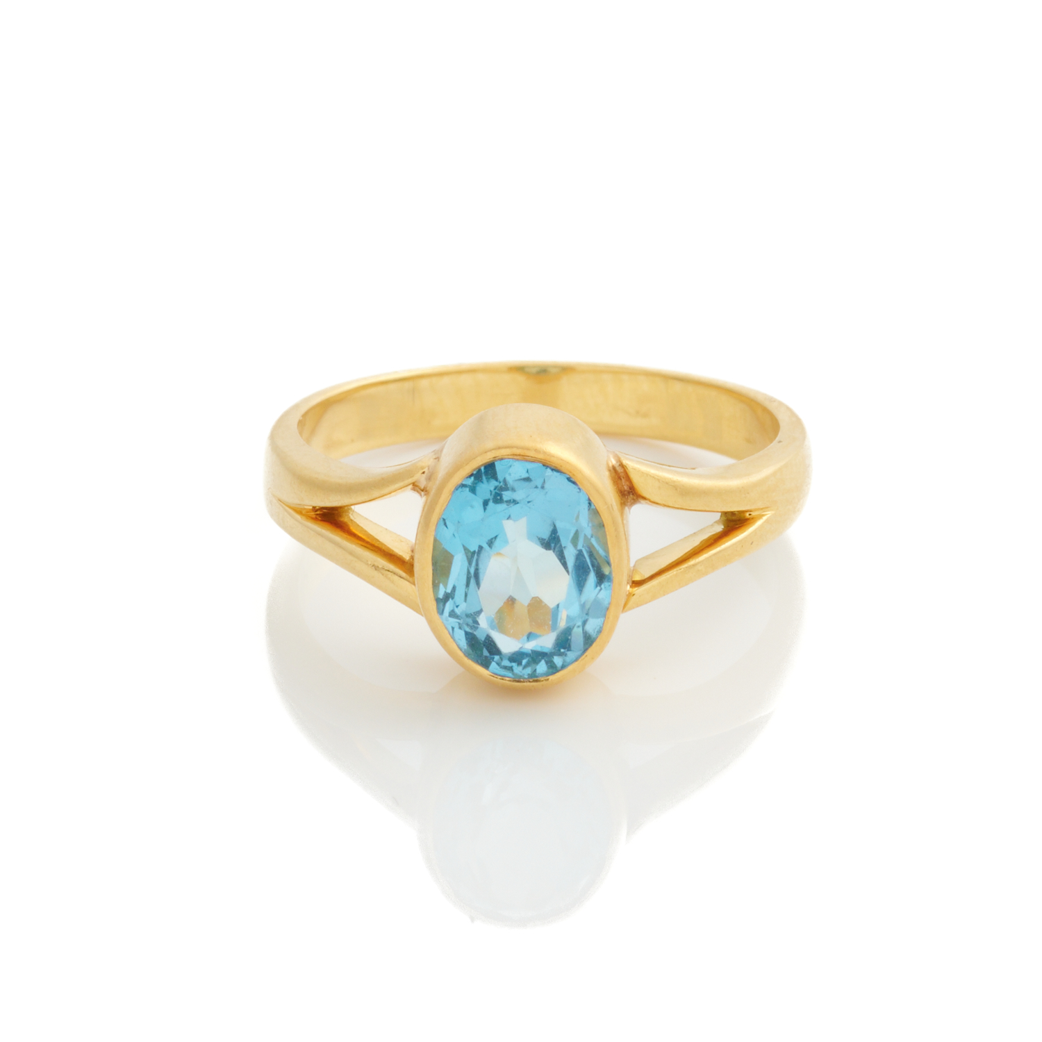 A TOPAZ RING IN 18CT GOLD, SIZE R, 5.5GMS