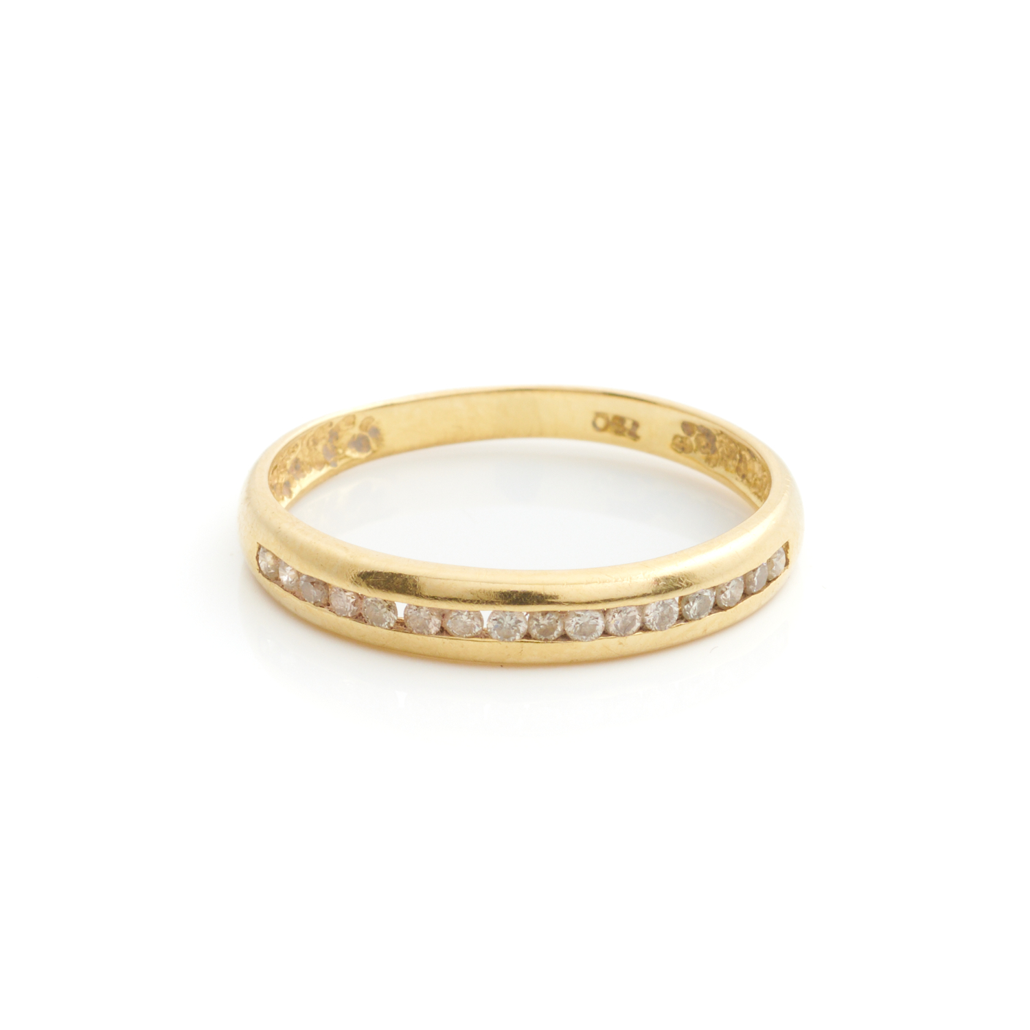 A VINTAGE TENSION-SET DIAMOND BAND IN 18CT GOLD, SIZE P, 1.9GMS