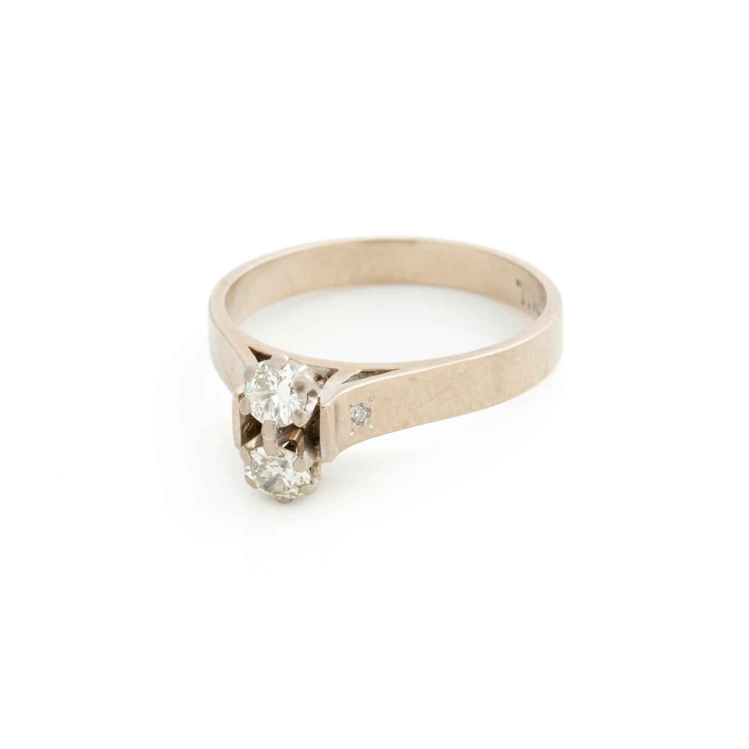 A TWO STONE DIAMOND RING IN 18CT WHITE GOLD AND PLATINUM, SIZE N, 4.1GMS