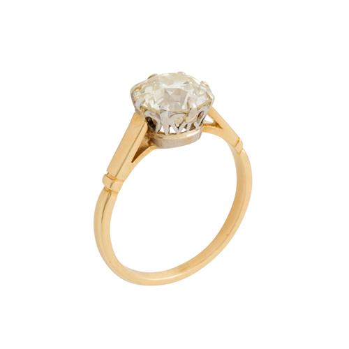 Claw-set with an old European-cut diamond weighing approximately 2.64 carats, size O, gross weight approximately 3.5 grams.