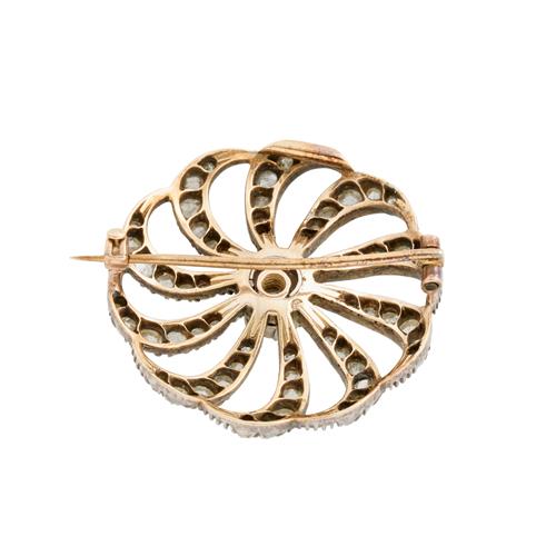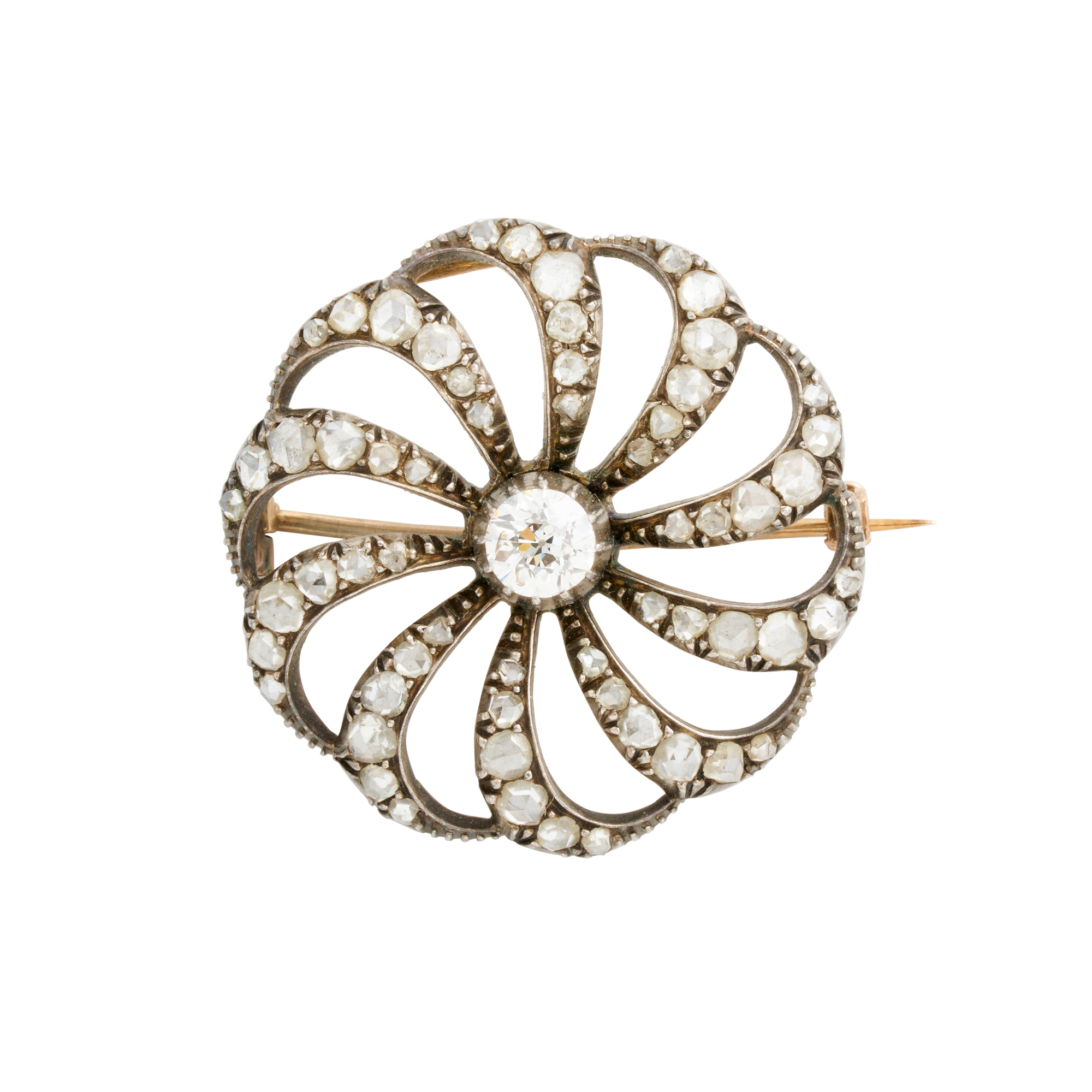 SILVER, 9CT GOLD AND DIAMOND PINWHEEL BROOCH, CIRCA 1910