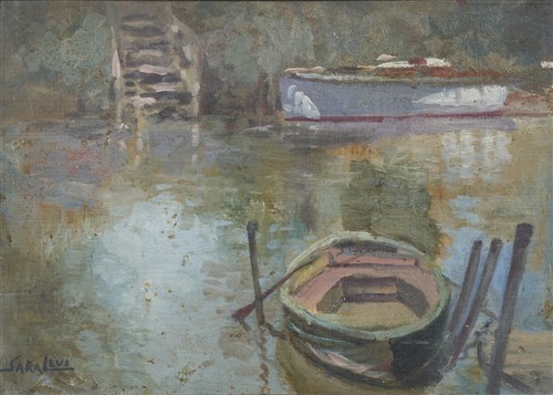 VIDA LAHEY (1882-1968) Brisbane to Southbank c.1930 oil on plywood 24.5 x 29.5cm