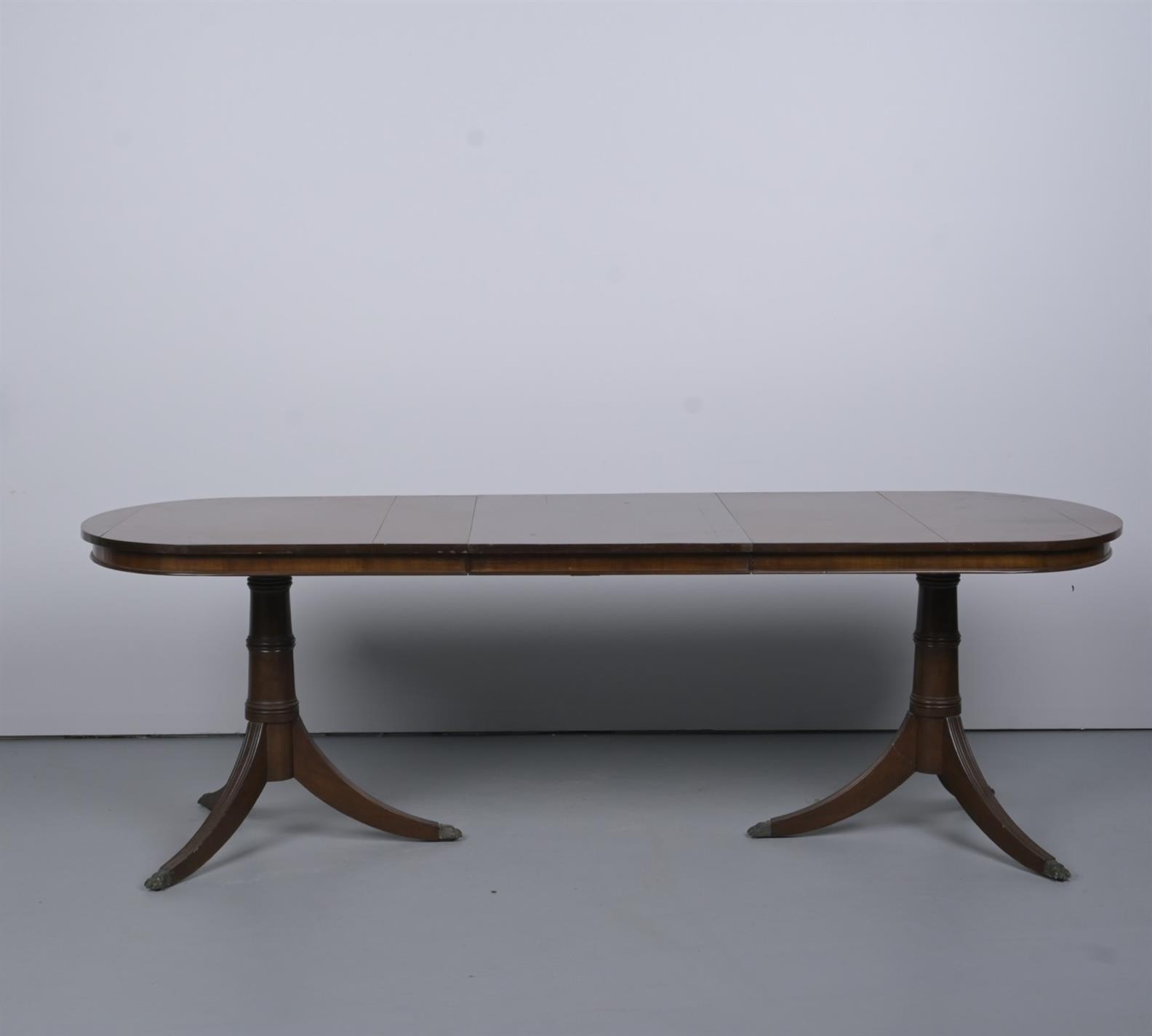 A GEORGE III STYLE MAHOGANY EXTENDING DINING TABLE (A/F) (77CM H X 237CM W X 89CM D, EXTENDED, 188CM W UNEXTENDED) (THIS ITEM MUST BE REMOVED BY CARRIERS AT THE CUSTOMER'S EXPENSE. LEONARD JOEL STAFF CANNOT ASSIST CARRYING THIS ITEM)