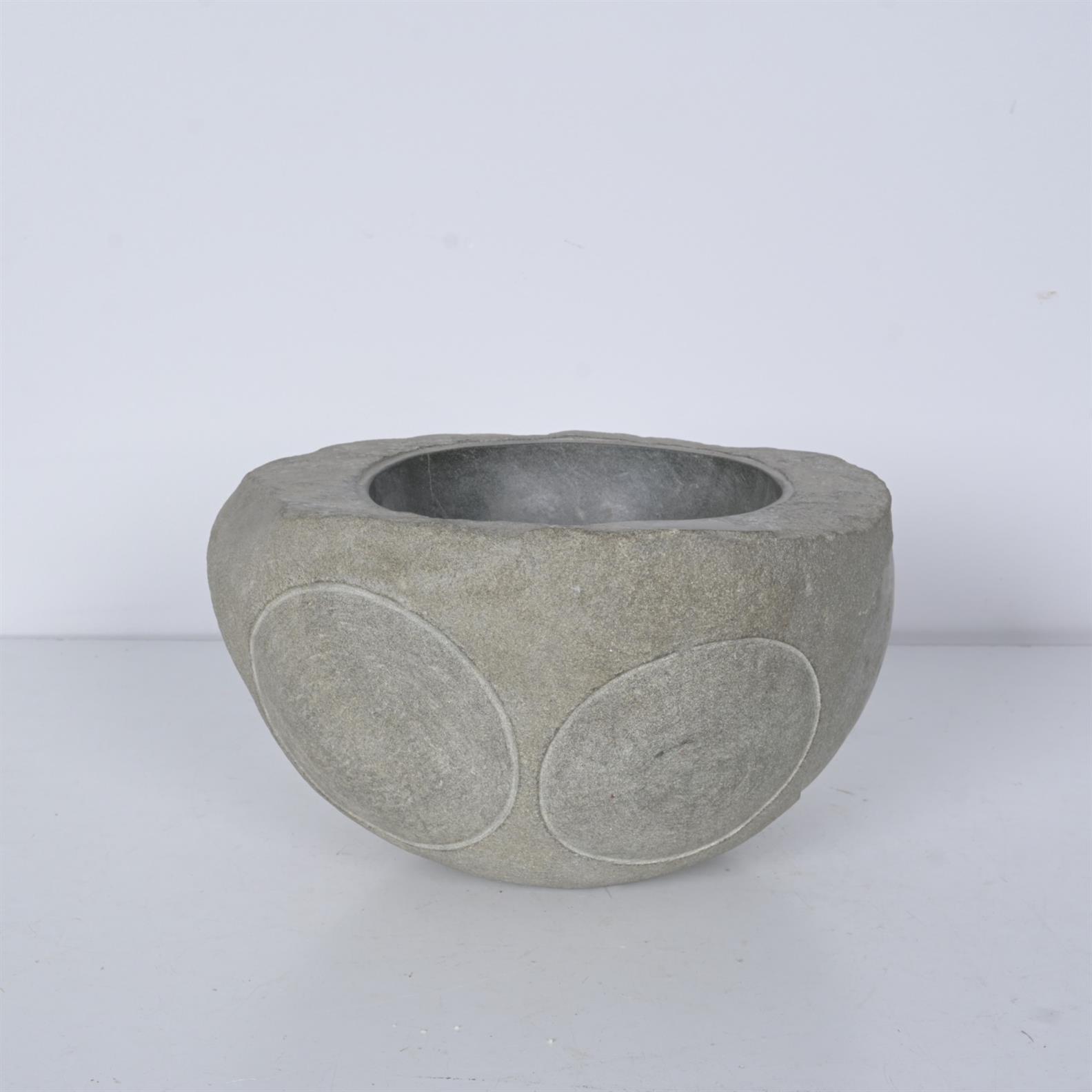 A POLISHED STONE BOWL (21CM H X 39CM W X 35CM D)