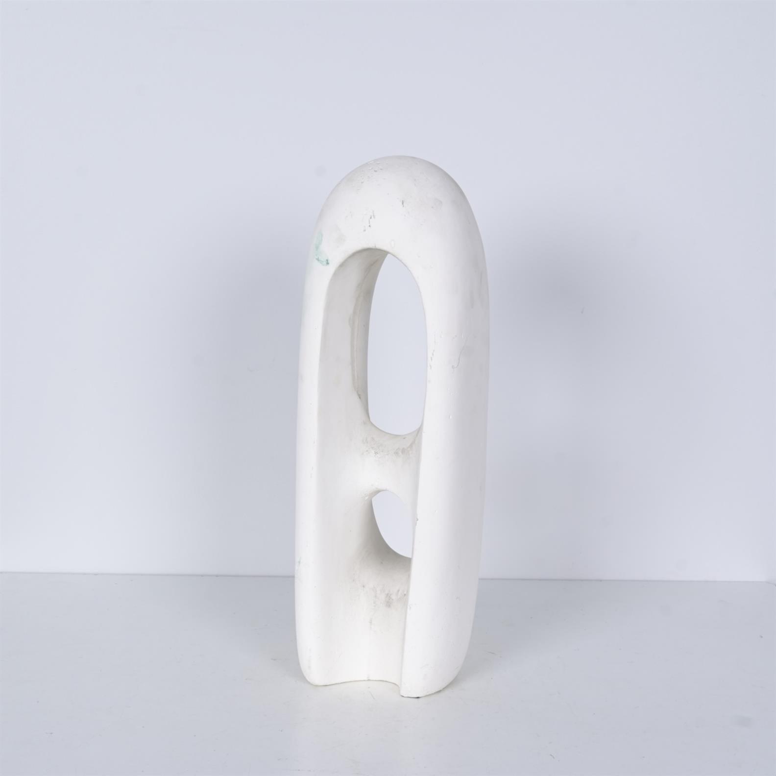 A WHITE PLASTER ABSTRACT SCULPTURE (59CM H X 19CM D)