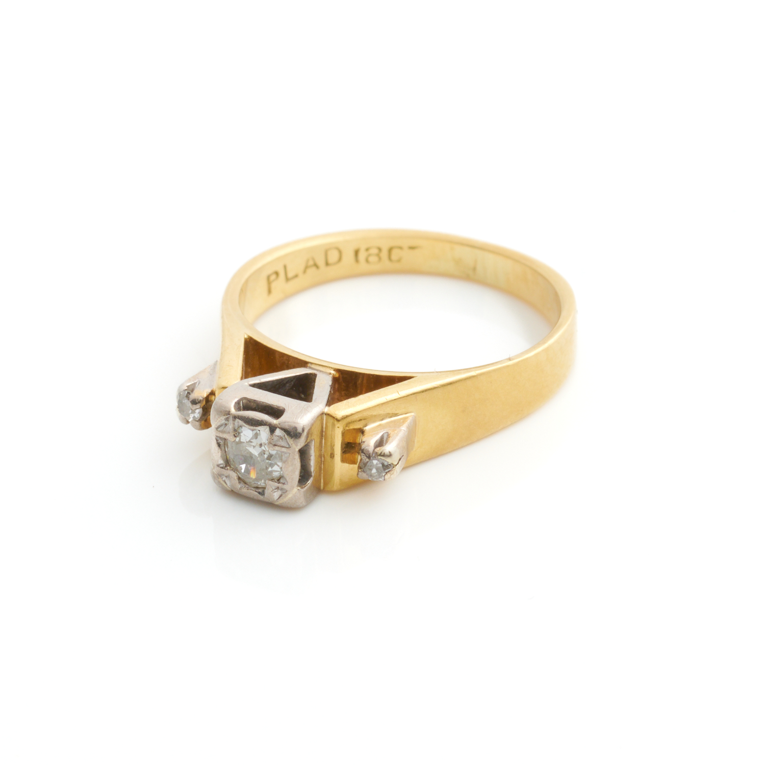 A DIAMOND RING IN 18CT GOLD AND PALLADIUM, THE CENTRAL DIAMOND WEIGHING APPROXIMATELY 0.10CTS, SIZE K 1/2, 4.7GMS