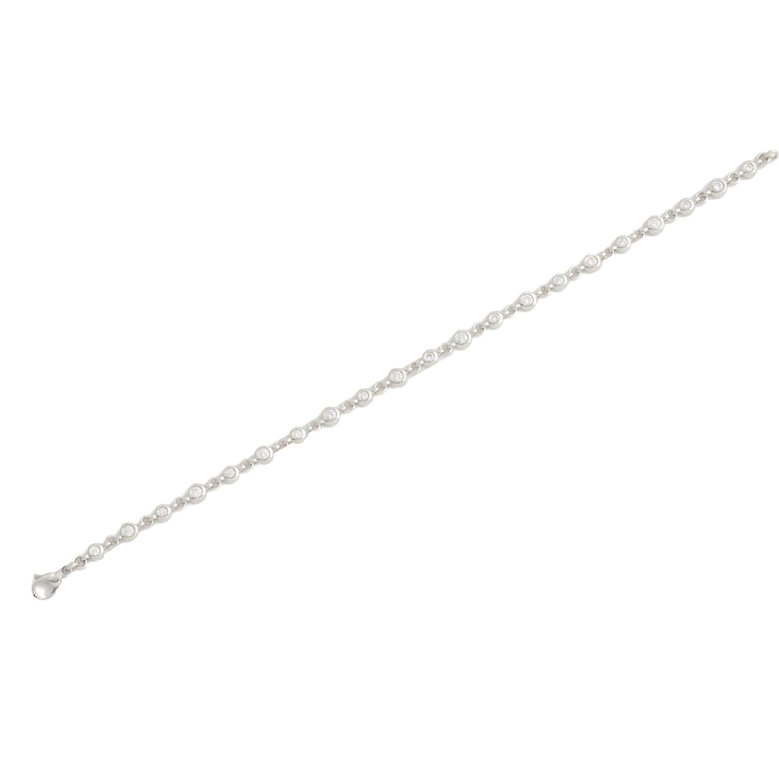 A DIAMOND LINE BRACELET IN 18CT WHITE GOLD, THE BEZEL SET DIAMONDS TOTALLING 1.08CTS, 190MM, 10.7GMS