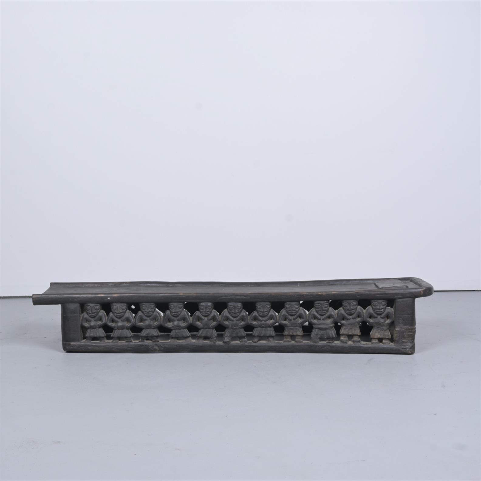 A CARVED HARDWOOD BAMILEKE BED, CAMEROON (27CM H X 163CM W X 39CM D)