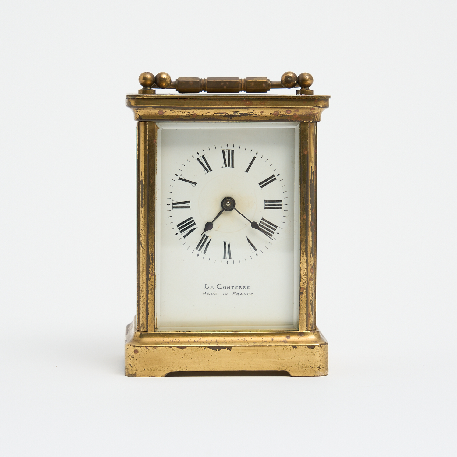 A LATE 19TH CENTURY FRENCH BRASS CARRIAGE CLOCK WITH KEY H.11CM
