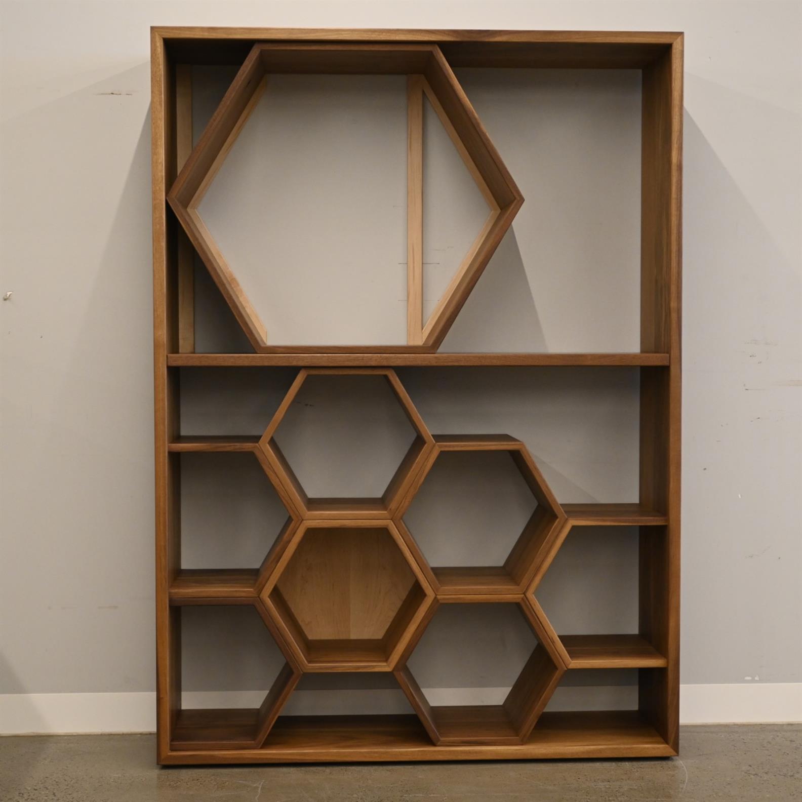 A CONTEMPORARY BESPOKE AMERICAN WALNUT AND MAPLE OPEN BOOKCASE BY SHAWN CURREY, COMMISSIONED FROM HIM BY THE VENDOR, SIGNED TO THE REVERSE (165H X 118W X 31D CM) (THIS ITEM MUST BE REMOVED BY CARRIERS AT THE CUSTOMER'S EXPENSE. LEONARD JOEL STAFF CANNOT ASSIST CARRYING THIS ITEM)