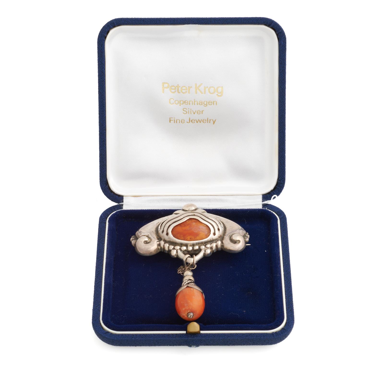 DAVID ANDERSEN, AN AMBER BROOCH IN STERLING SILVER, 80MM X 60MM