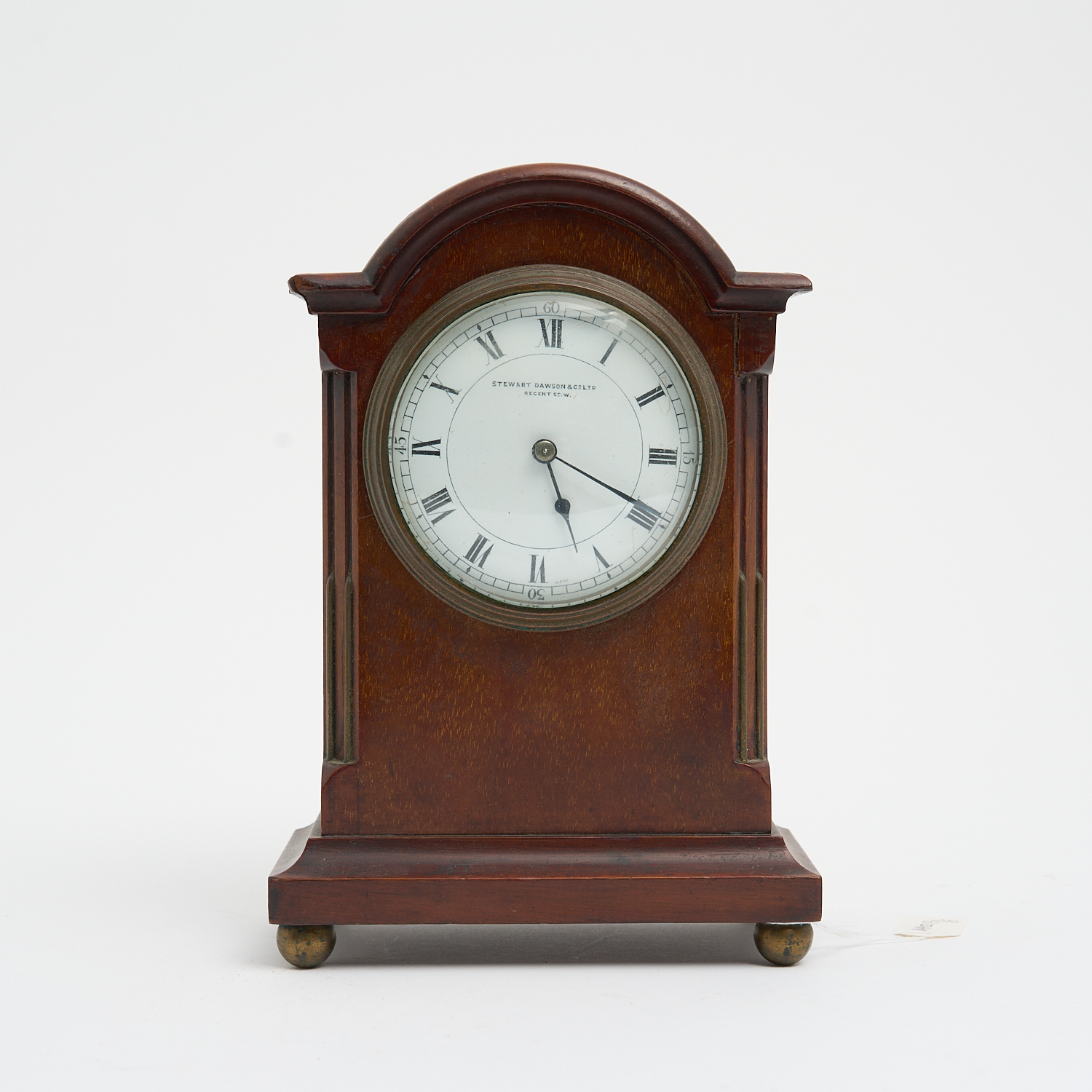 A STEWART DAWSON AND CO SMALL MANTLE CLOCK, MAHOGANY CASE, H.22.5CM, TIME ONLY, CYLINDER PLATFORM