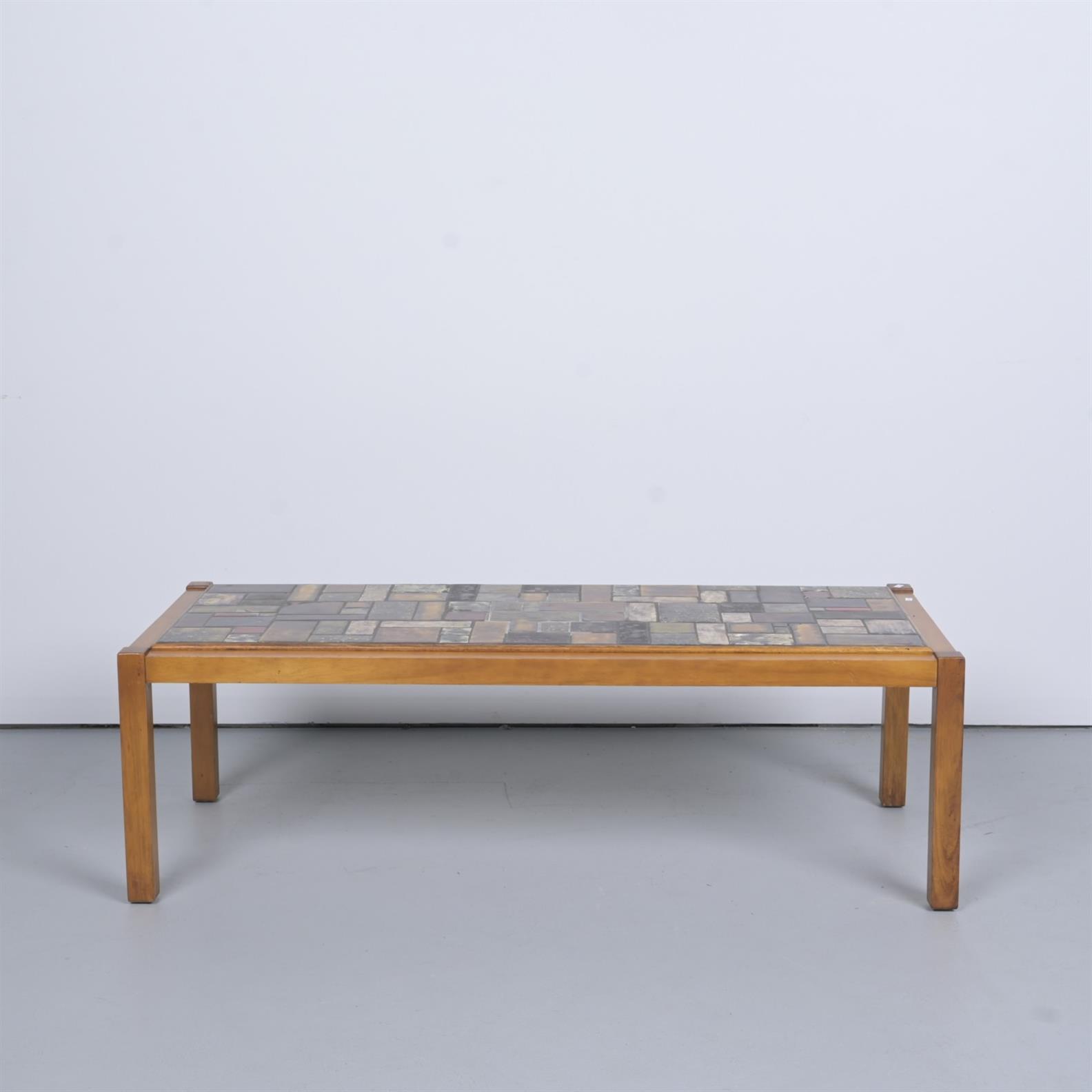 A MID-CENTURY ITALIAN RECTANGULAR TILED TOP COFFEE TABLE (43CM H X 133CM W X 58CM D)