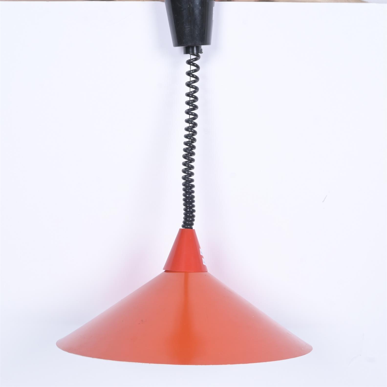 A MID-CENTURY ENAMELED PENDANT LIGHT (60CM H X 44CM DIA)