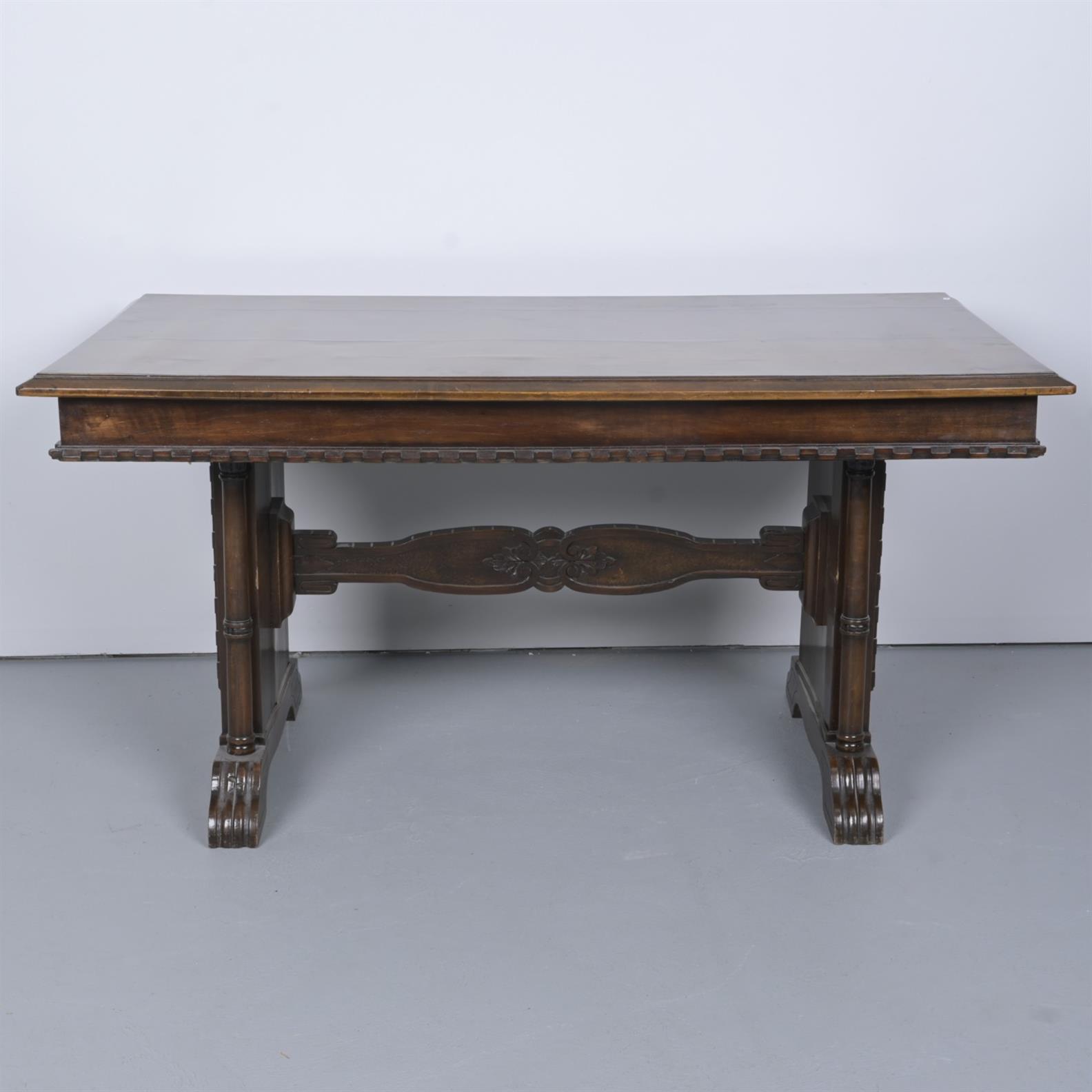 A STAINED MAHOGANY LIBRARY TABLE IN ANTIQUARIAN MANNER (81H X 160W X 90D CM) (THIS ITEM MUST BE REMOVED BY CARRIERS AT THE CUSTOMER'S EXPENSE. LEONARD JOEL STAFF CANNOT ASSIST CARRYING THIS ITEM)