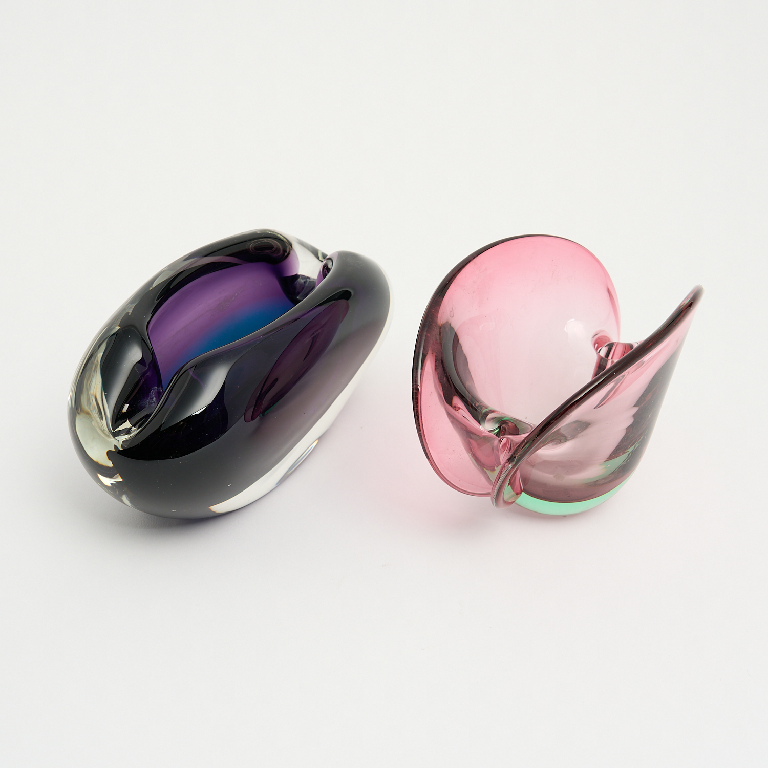 TWO ART GLASS BOWLS IN PURPLE W.17CM (LARGEST)
