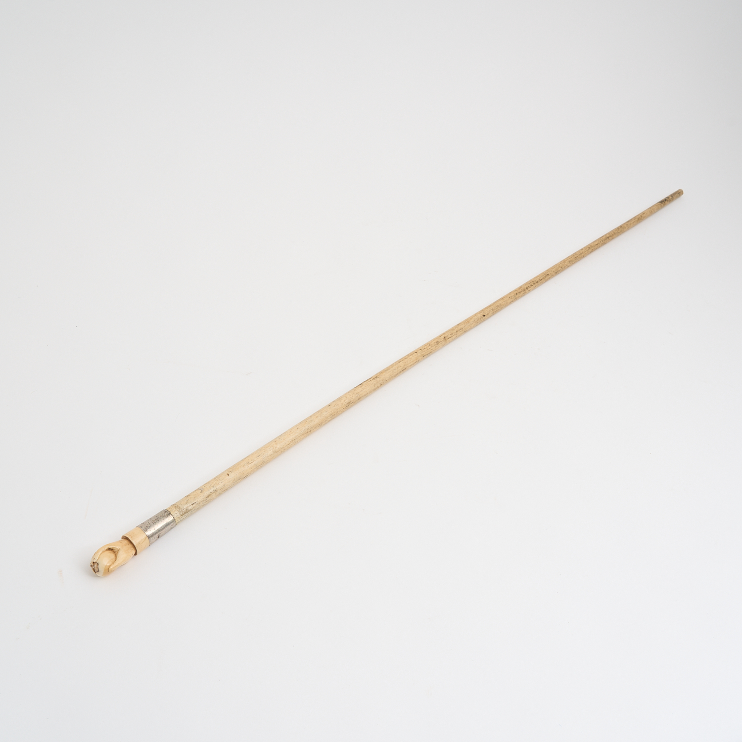 AN ANTIQUE HAMMER HANDLED WHALEBONE WALKING STICK L.82CM