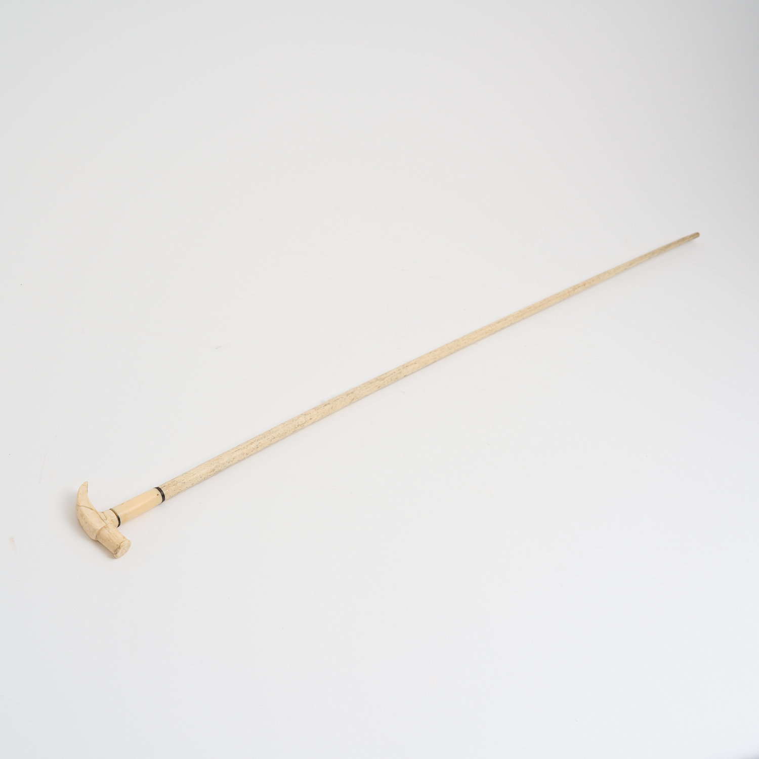 AN ANTIQUE HAMMER HANDLED WHALEBONE WALKING STICK L.82CM