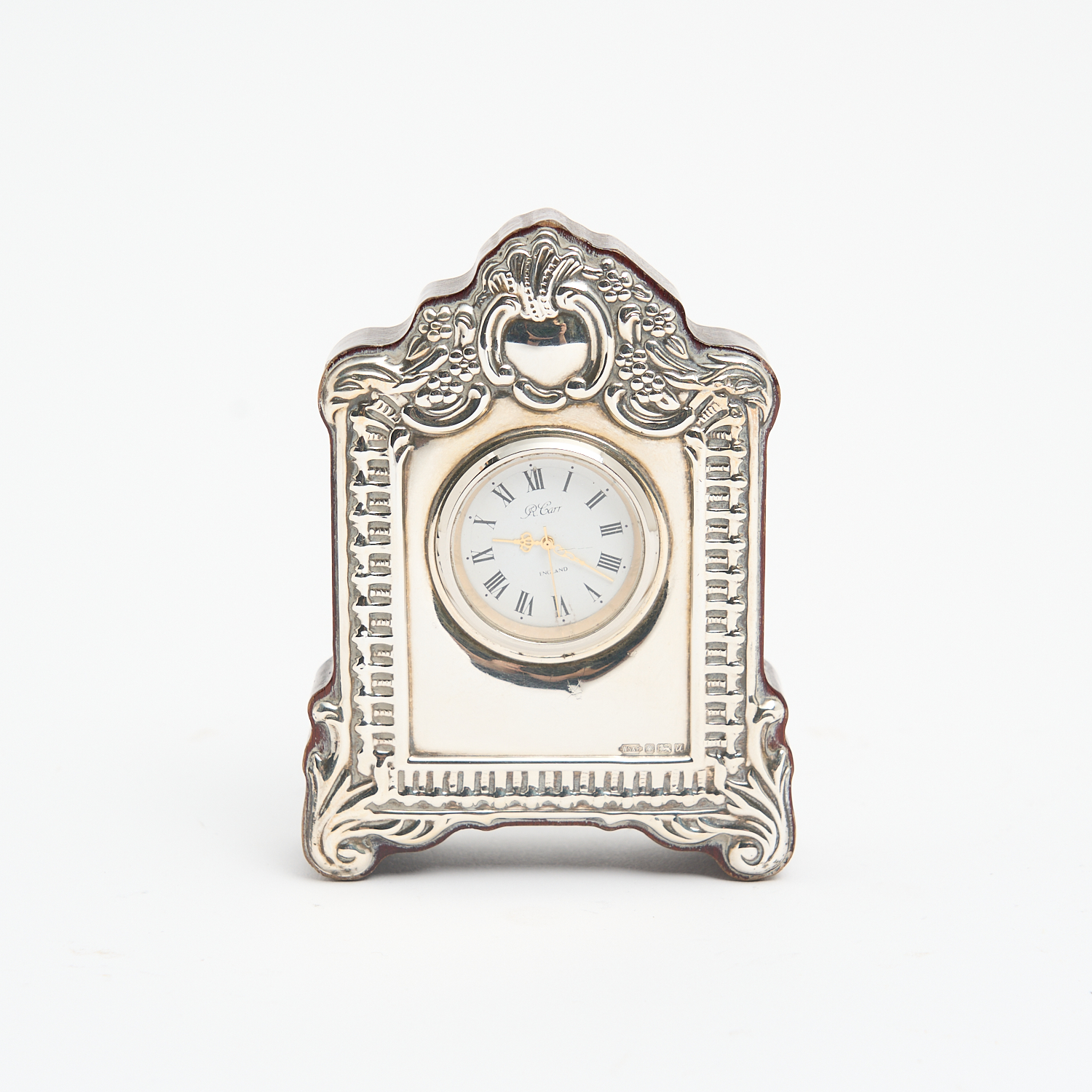 A STERLING SILVER CASED DESK CLOCK H.10.5CM