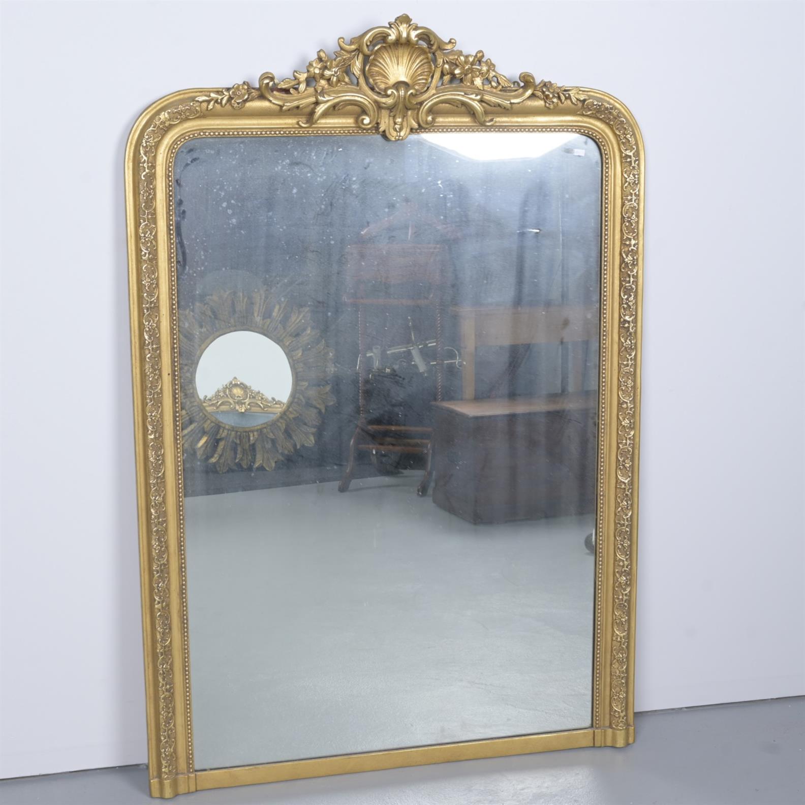 AN IMPRESSIVE OVERMANTLE MIRROR IN GILT FRAME (159H X 108W CM) (THIS ITEM MUST BE REMOVED BY CARRIERS AT THE CUSTOMER'S EXPENSE. LEONARD JOEL STAFF CANNOT ASSIST CARRYING THIS ITEM)