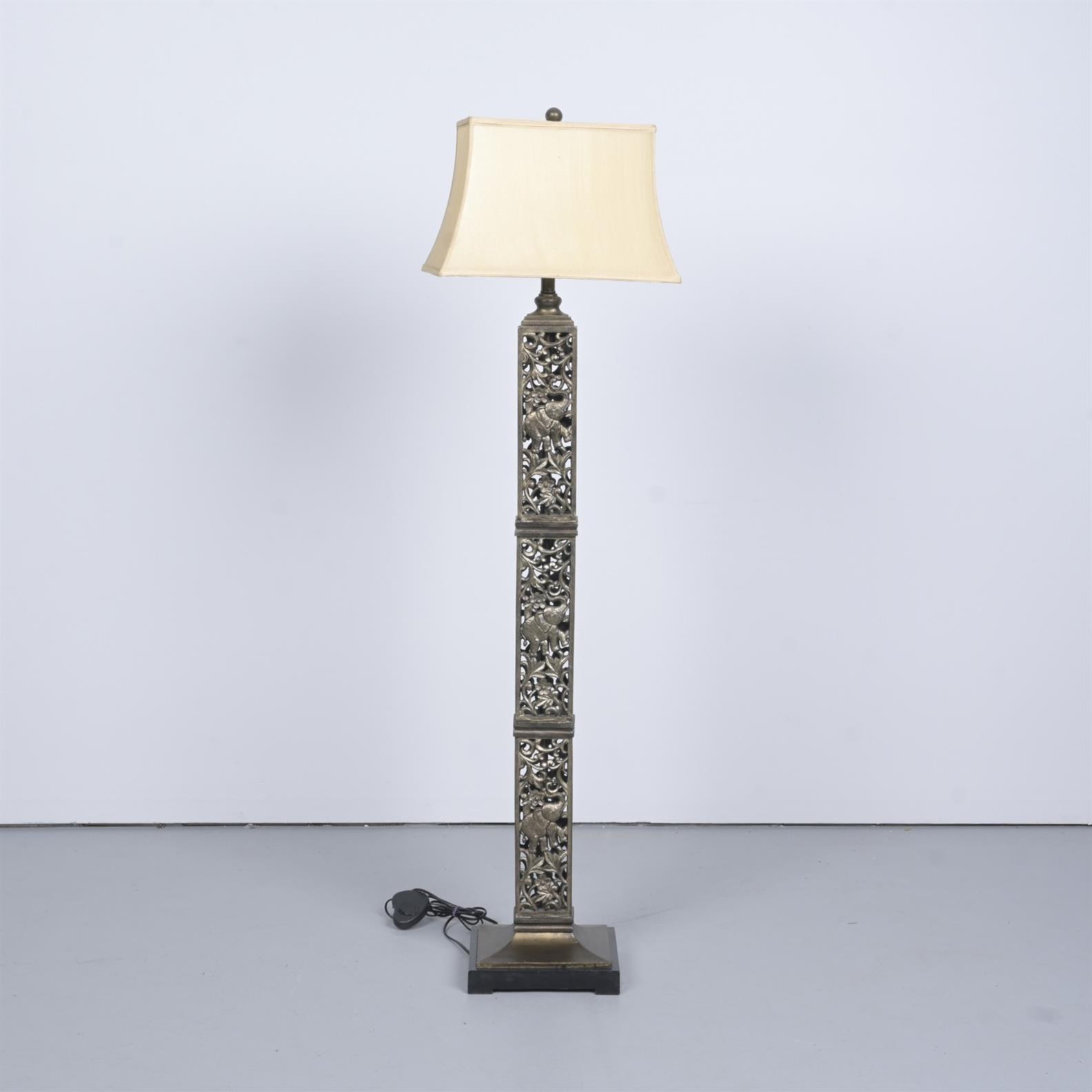 A CHINESE STANDARD LAMP WITH CAST BASE (158CM H X 43CM W X 28CM D)