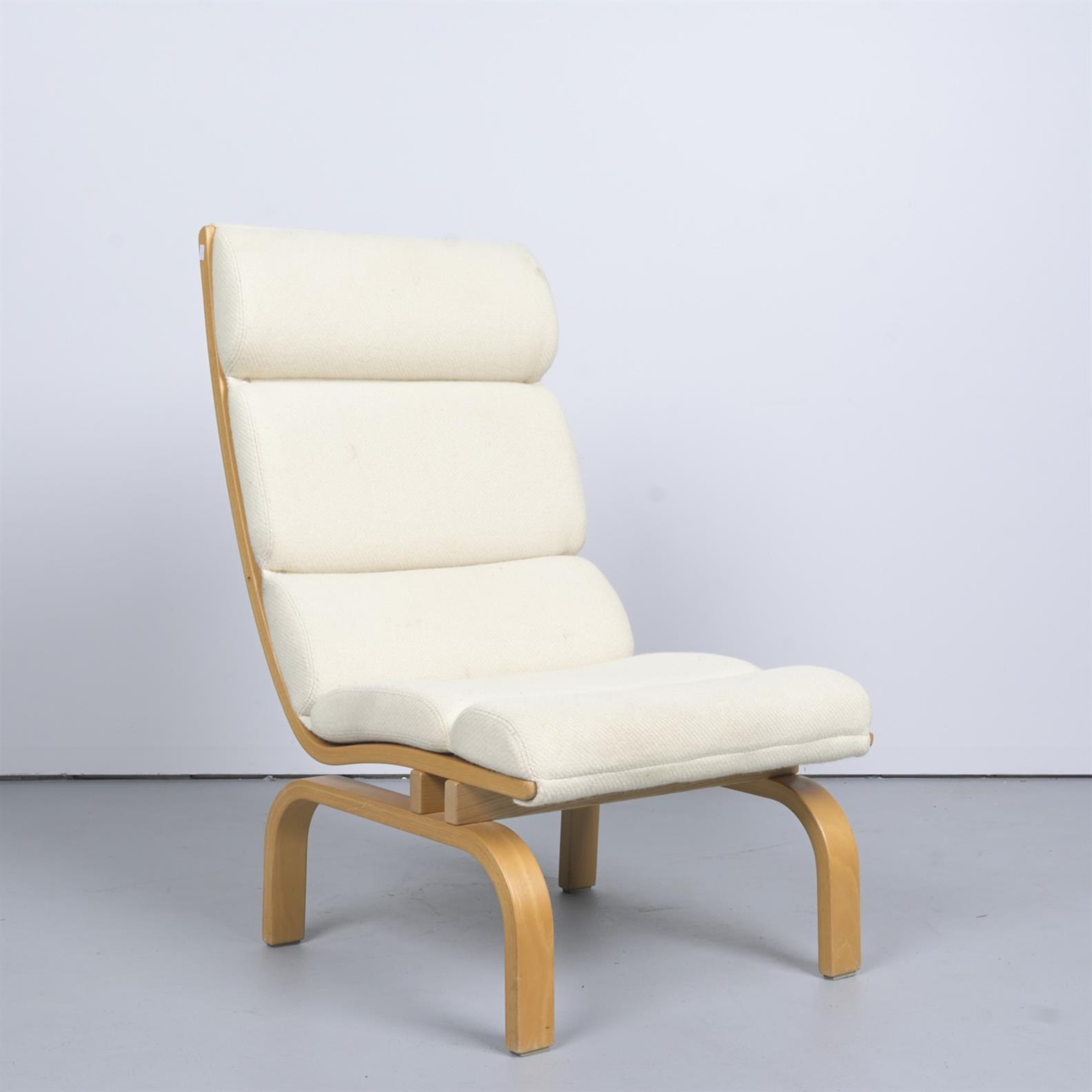 A DANISH BENTWOOD AND UPHOLSTERED OCCASIONAL CHAIR (105CM H X 60CM W X 83CM D)