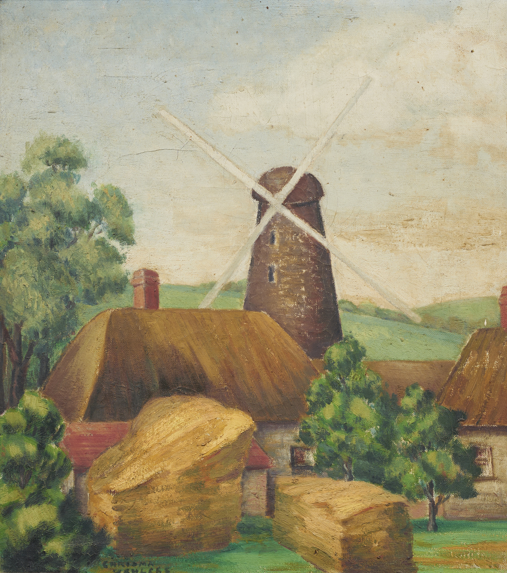 Chrisma Wahlers was a longstanding member of the Melbourne Society of Women Painters and Sculptors, exhibiting regularly alongside Dora Wilson, Janet Cumbrae-Stewart, and A.M.E. Bale. Working primarily in oils, her paintings were described by art critic George Bell as a "thoughtful organisation of subject matter"(1), highlighting her considered approach to composition. Though her name is less prominent in the broader cannon of Australian art, she played an active role in the cultural life of Melbourne, contributing to exhibitions and community efforts including the 1940s Red Cross War Appeal.