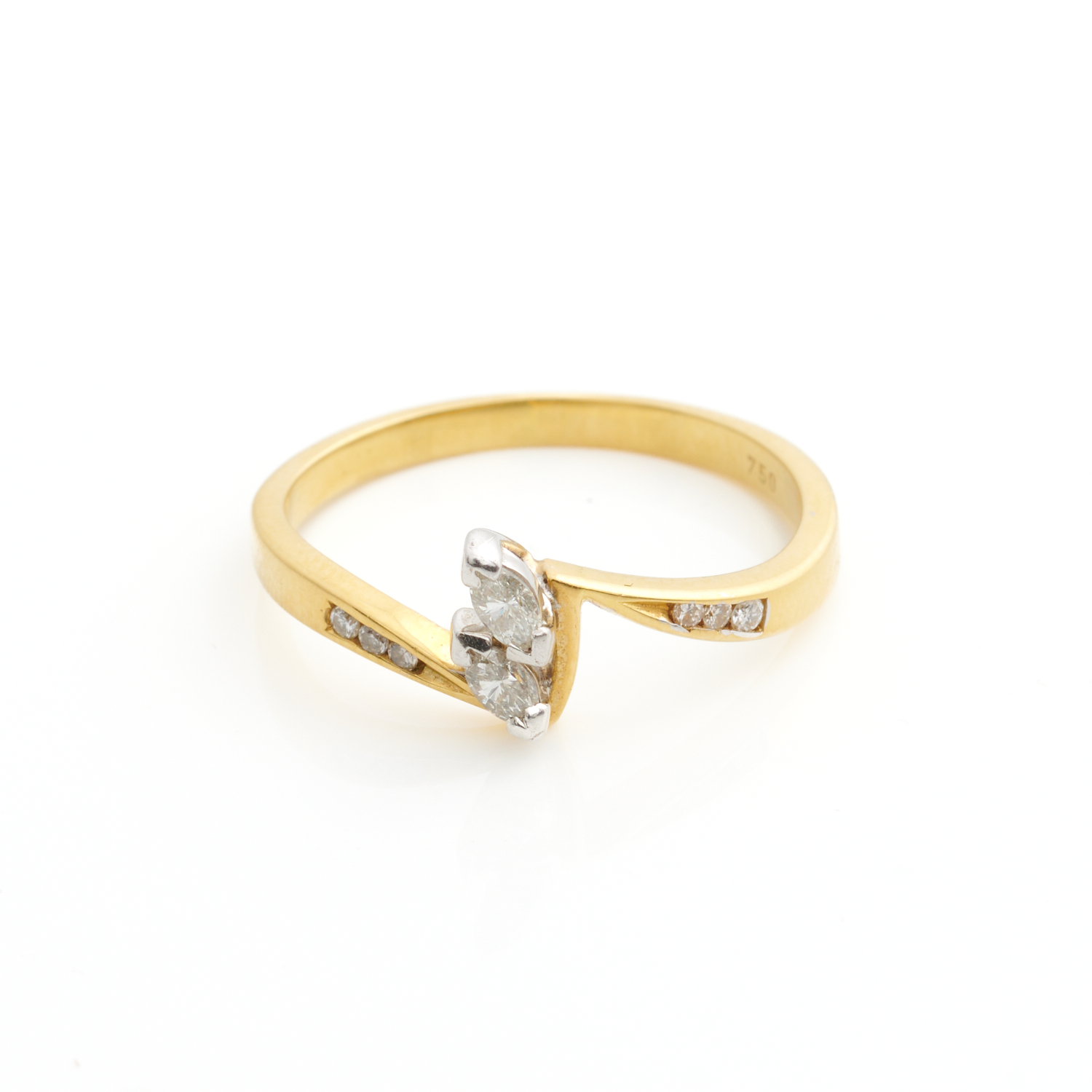 A DIAMOND BAND IN 18CT GOLD, THE MARQUISE CUT DIAMONDS TOTALLING APPROXIMATELY 0.10CTS, SIZE V 1/2, 4.0GMS