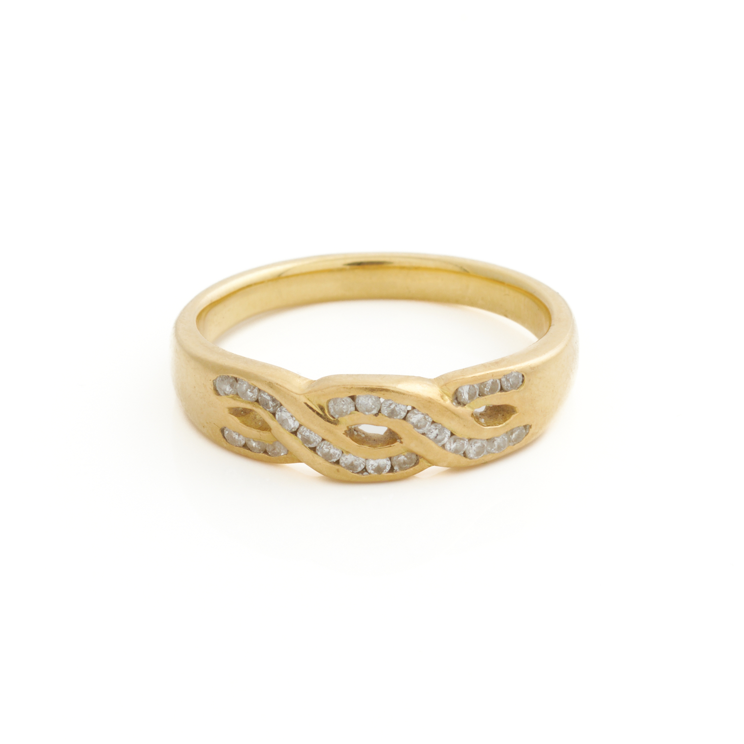 A DIAMOND CROSS OVER RING IN 18CT GOLD, SIZE T, 6.1GMS