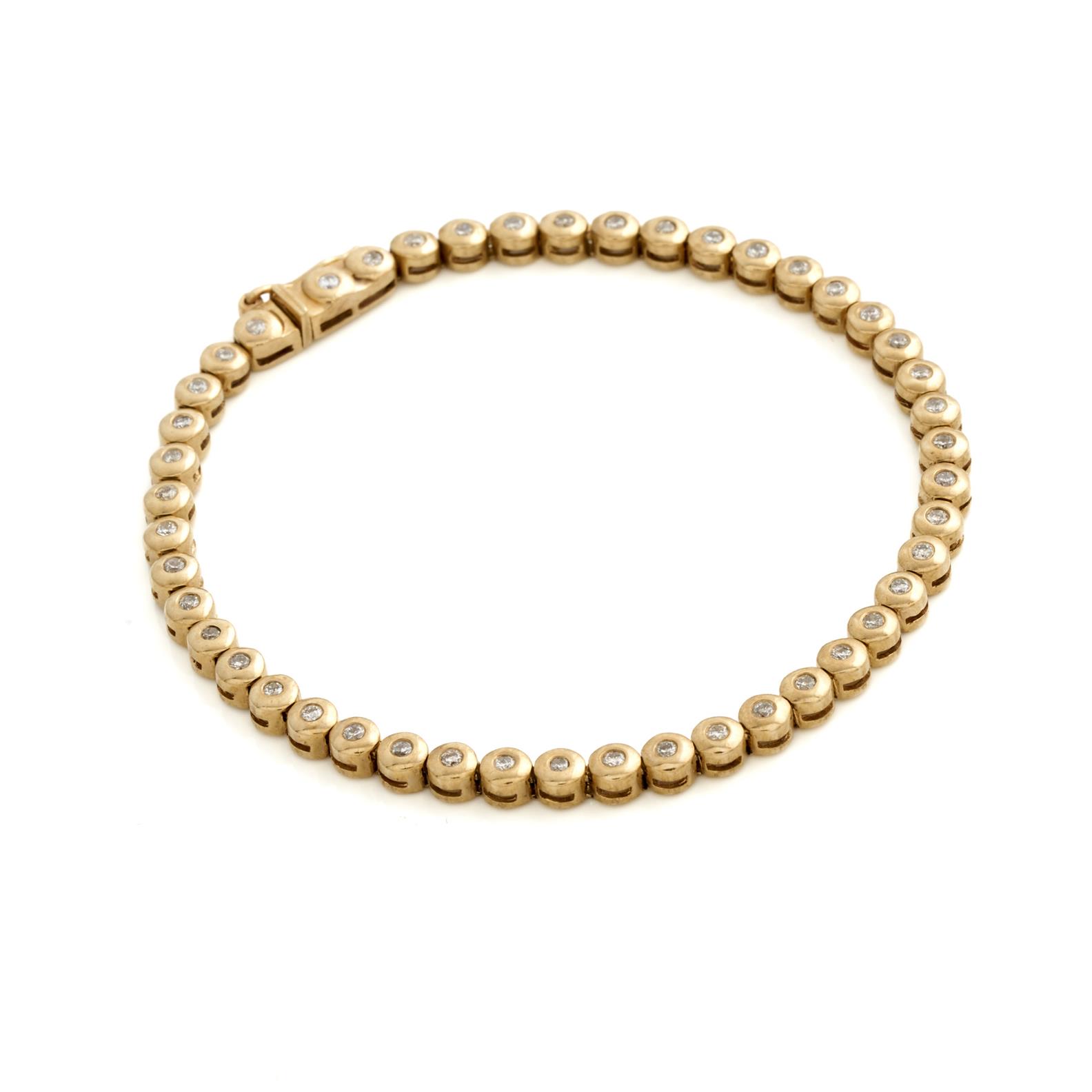 A DIAMOND LINE BRACELET IN 9CT GOLD, THE DIAMONDS TOTALLING APPROXIMATELY 0.40CTS, TO A TONGUE AND GROOVE CLASP, 190MM, 11.0GMS