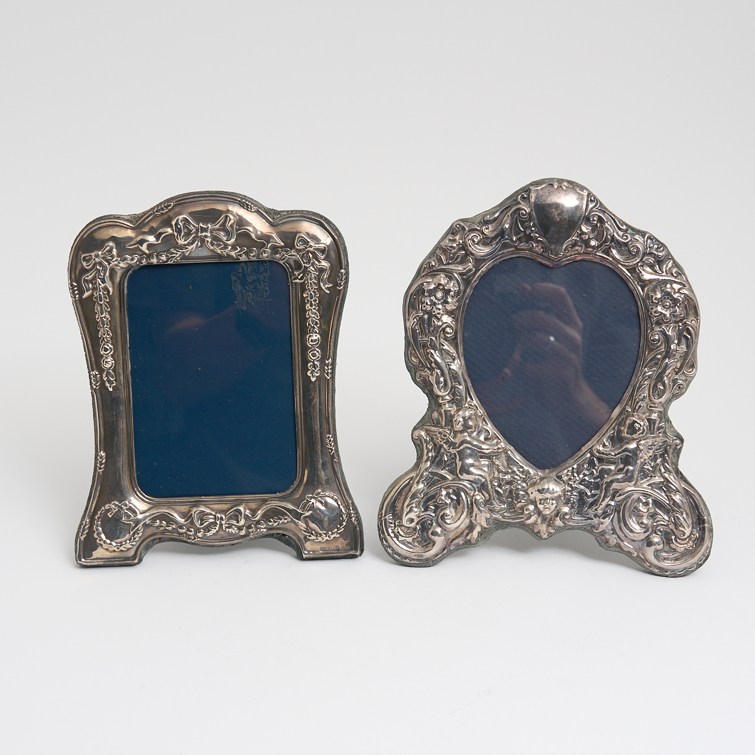 A PAIR OF STERLING SILVER PHOTOS FRAMES ONE HEART-SHAPED H.21CM (TALLEST)