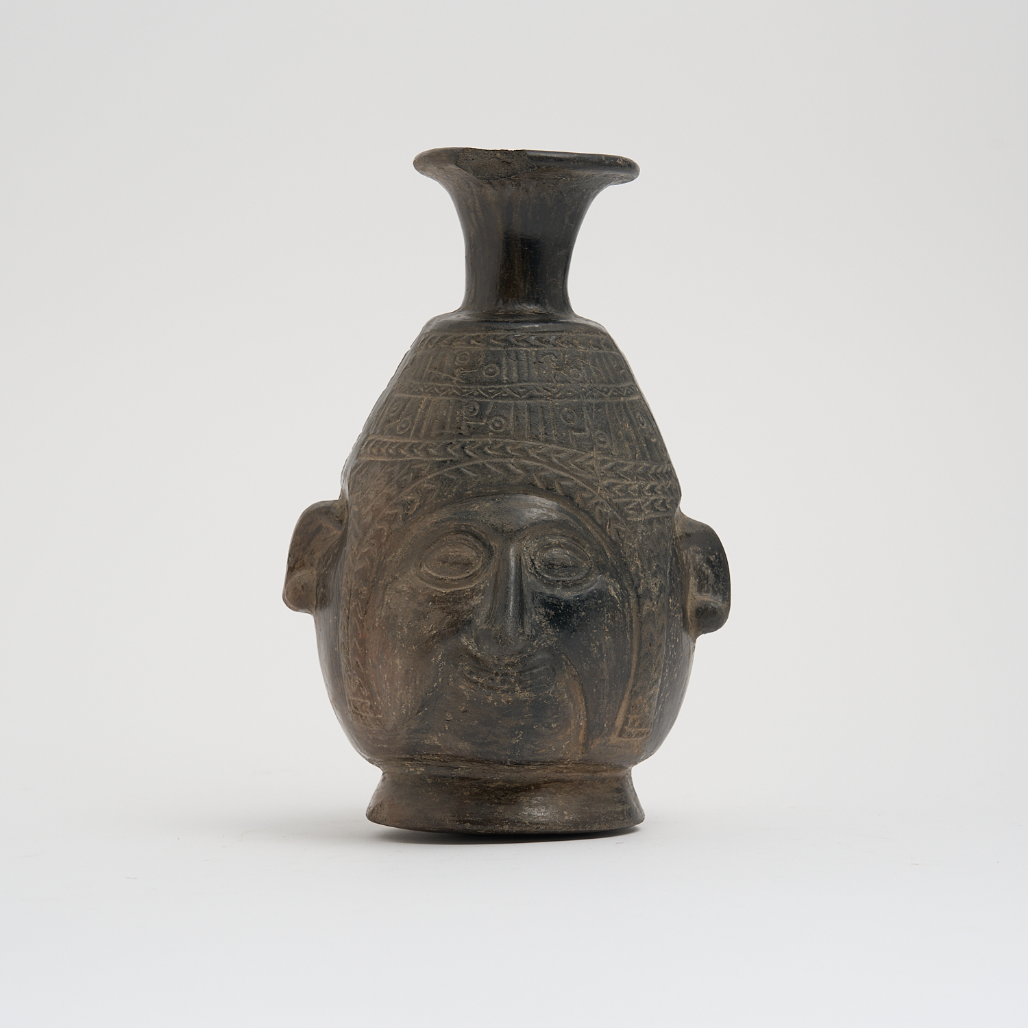 A PERUVIAN POTTERY MASK VASE, CIRCA 1200 AD, PROVENANCE PETER LANE (A/F) H.21CM