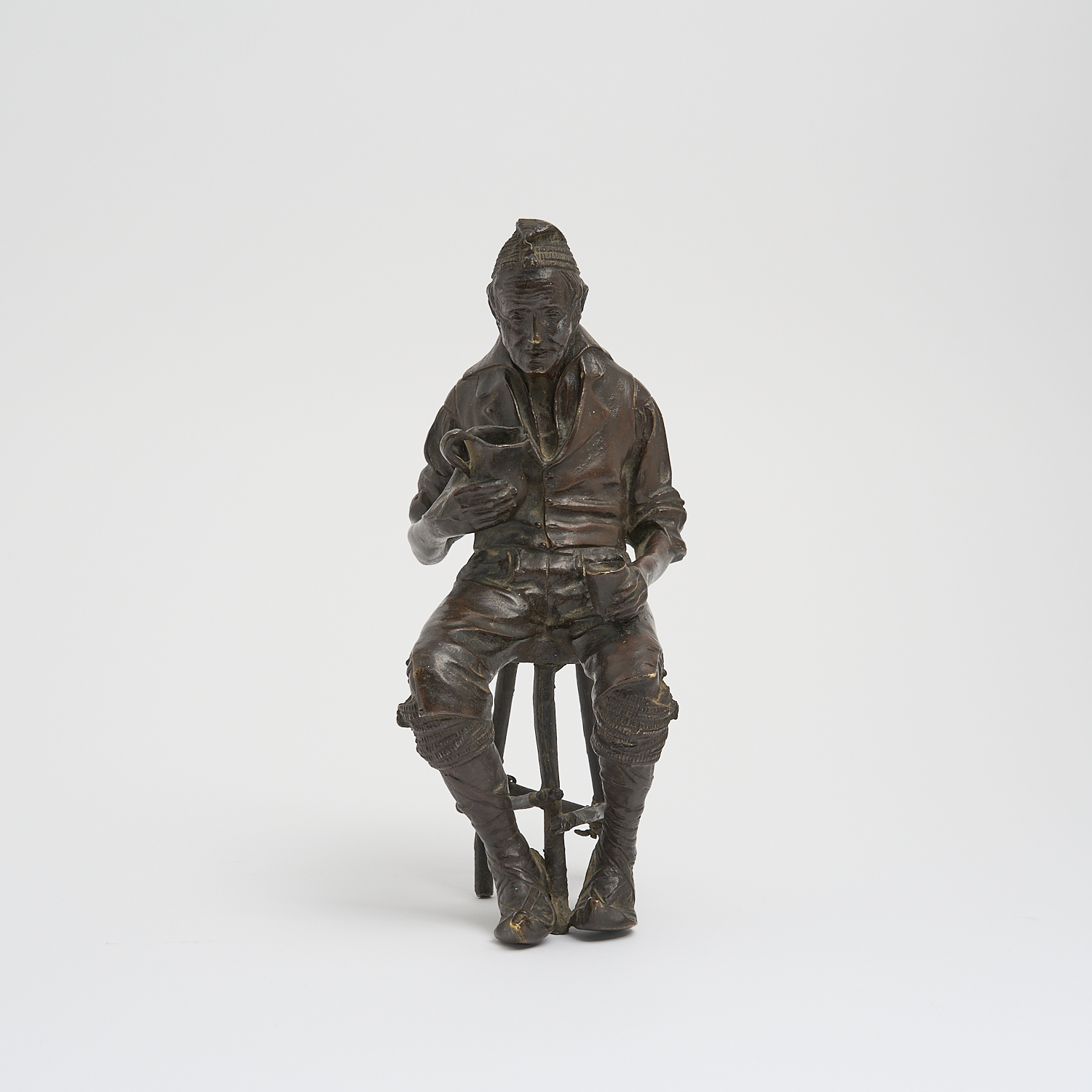 A 19TH CENTURY ITALIAN BRONZE OF A SEATED MAN, SIGN 'F.FASCA' H.26.5CM