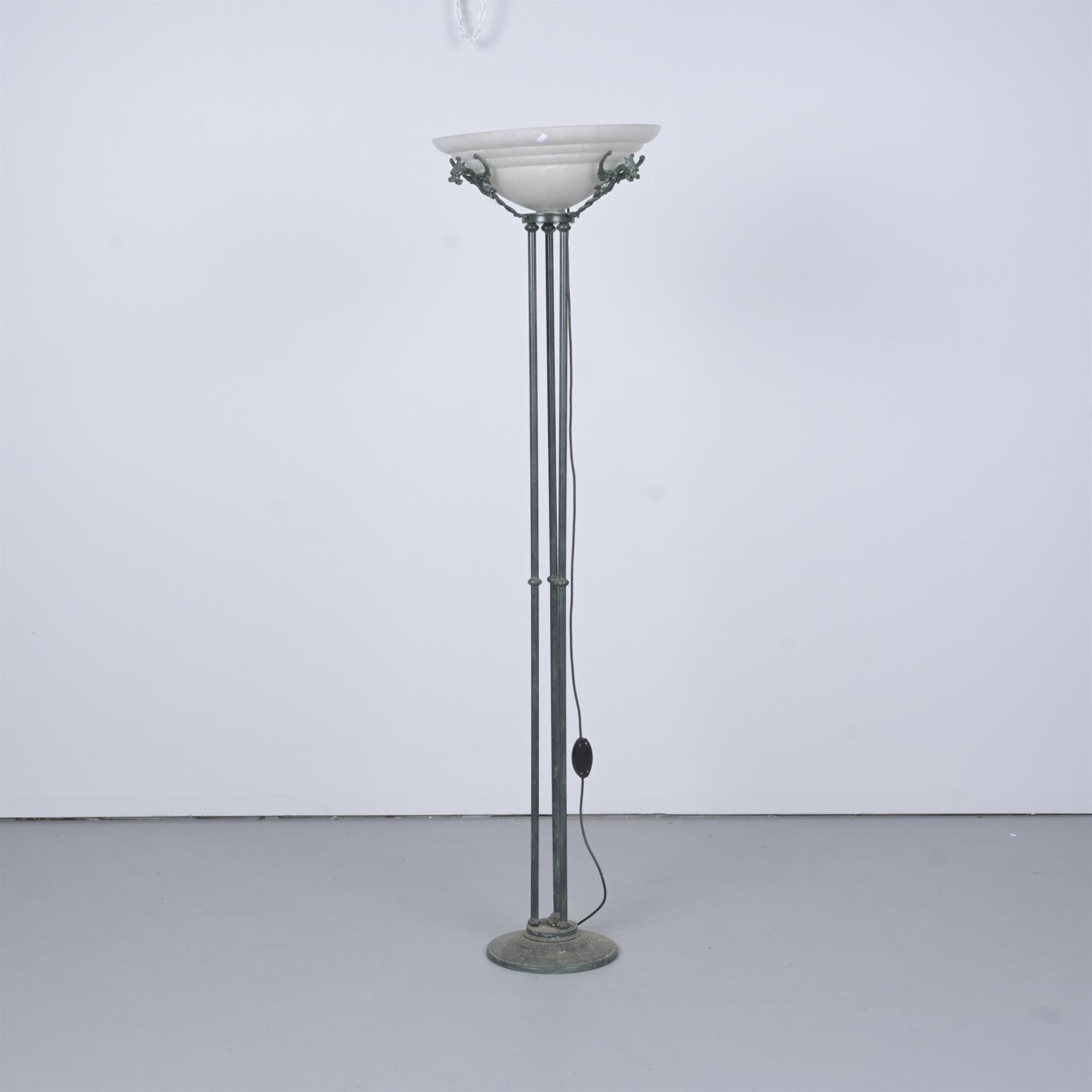 A METAL BASE STANDARD LAMP WITH FROSTED SHADE (181CM H X 50CM DIA)