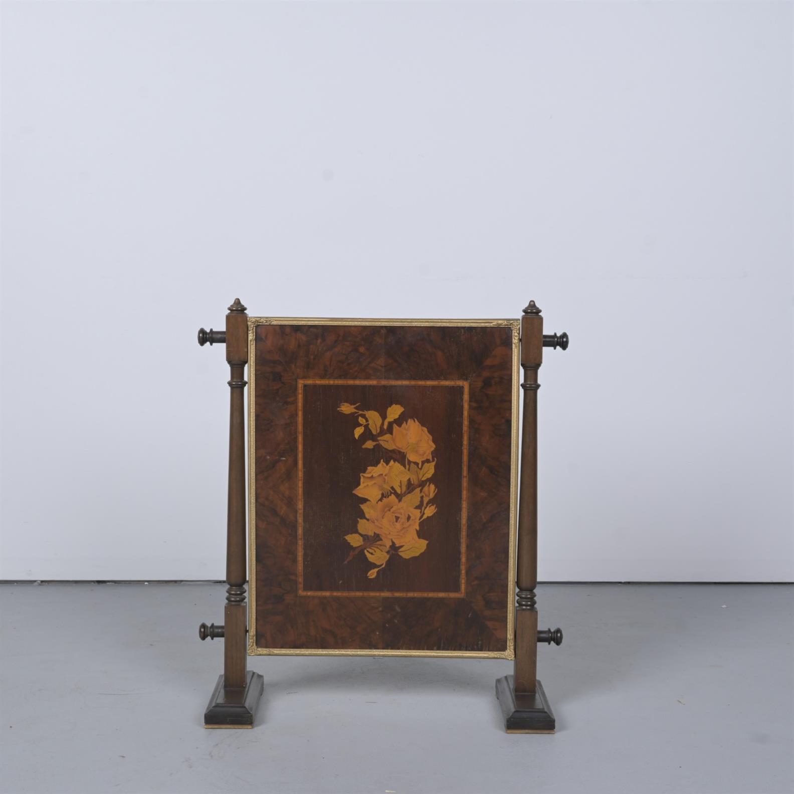 A PARQUETRY FIRE SCREEN (75CM H X 61CM W X 26CM D)