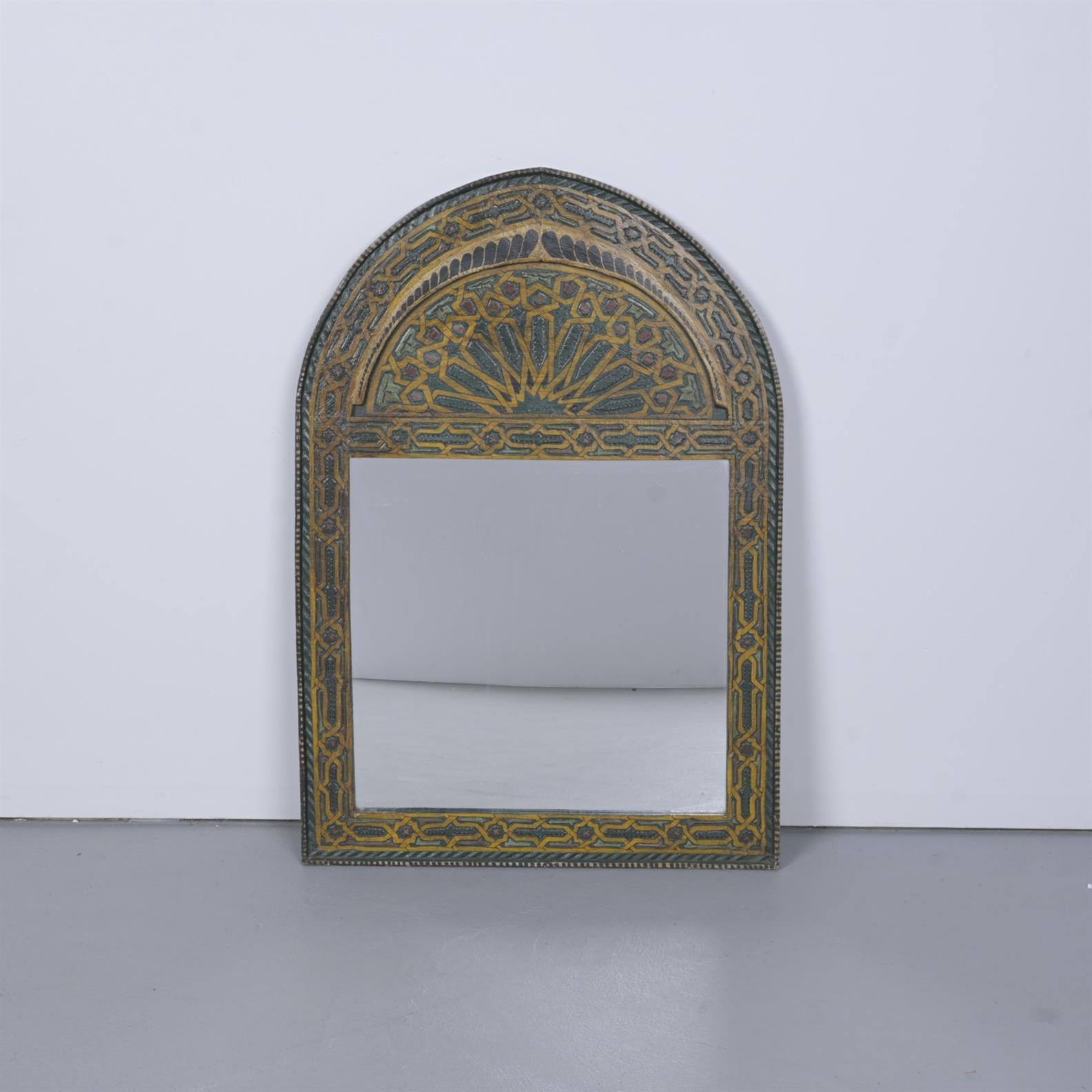 A MORROCAN-STYLE CARVED WOODEN WALL MIRROR (108CM H X 74CM W)
