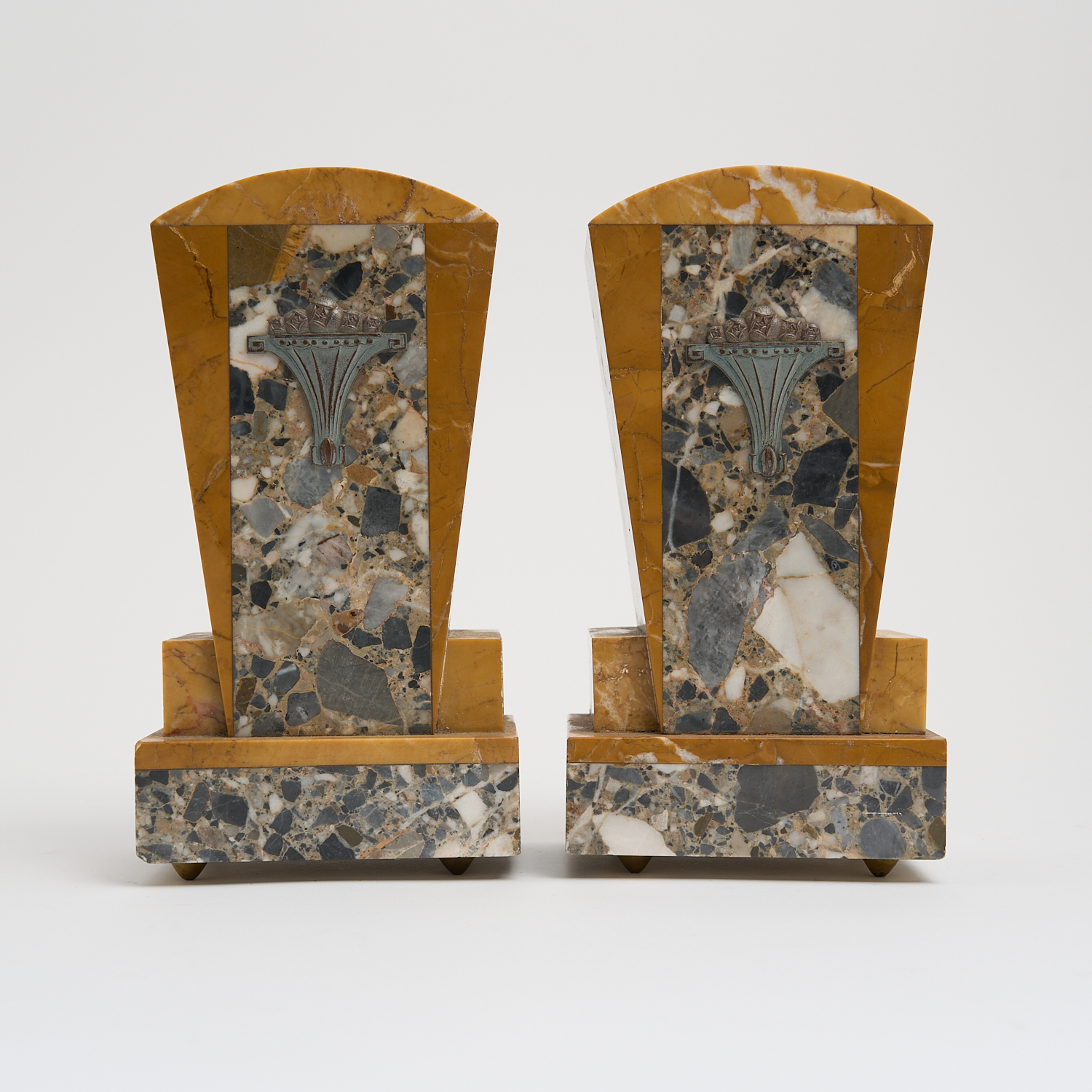 A PAIR OF ART DECO MARBLE BOOKENDS/GARNITURES H.21CM