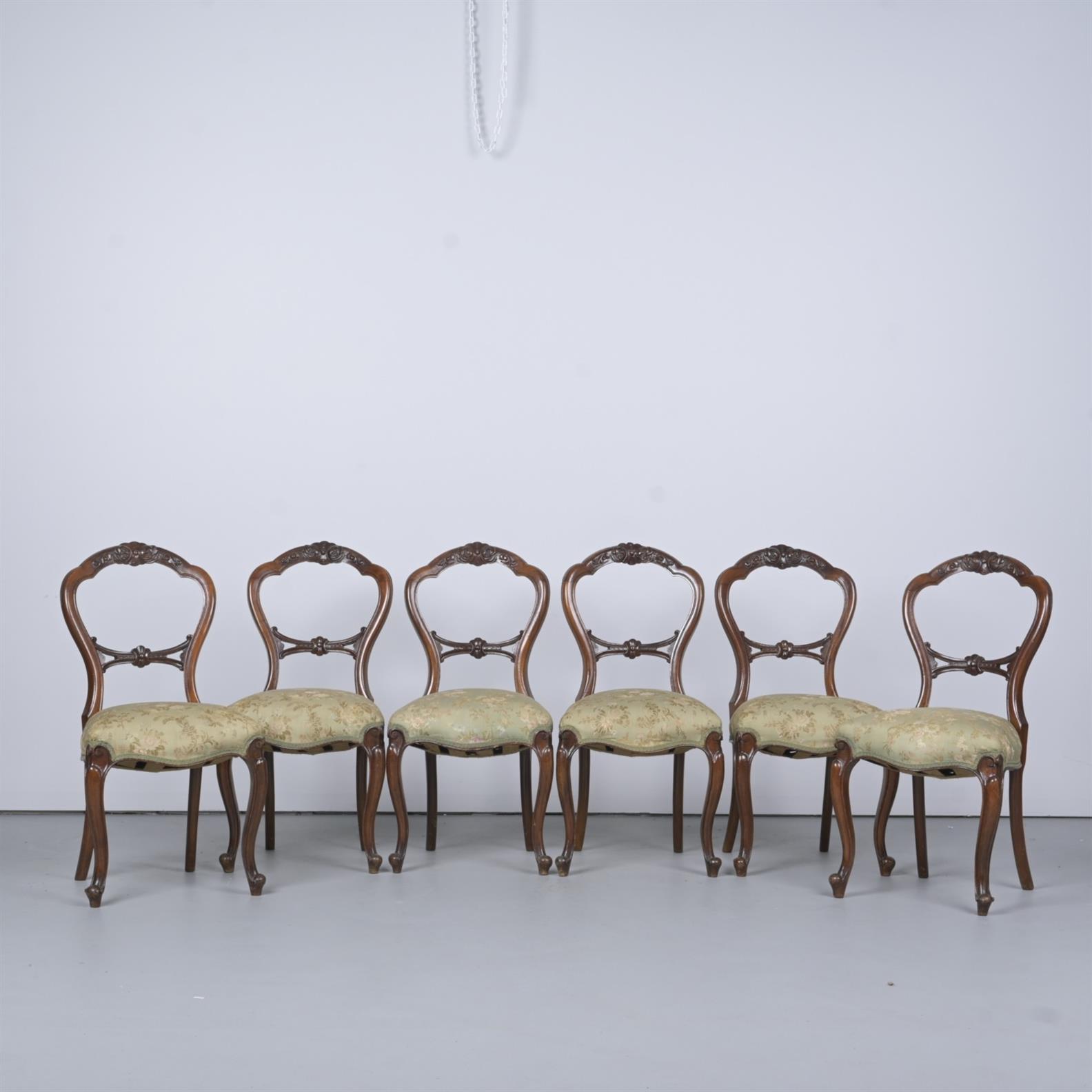 A SET OF SIX VICTORIAN WALNUT DINING CHAIRS (90CM H X 45CM W X 45CM D)