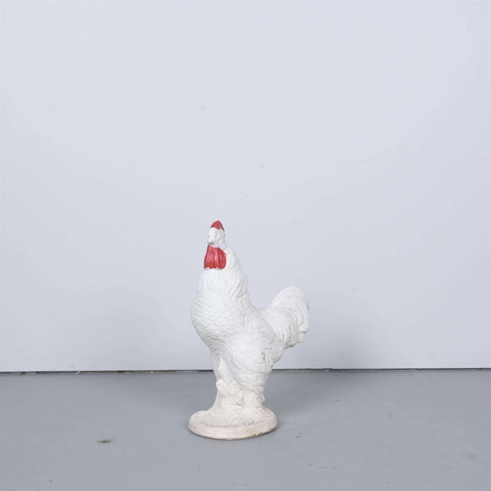 A PAINTED RECONSTITUTED STONE ROOSTER (64CM H X 42CM W)